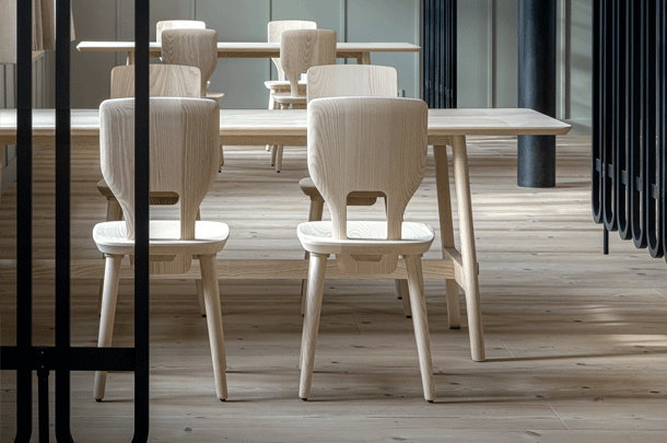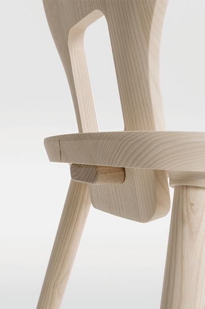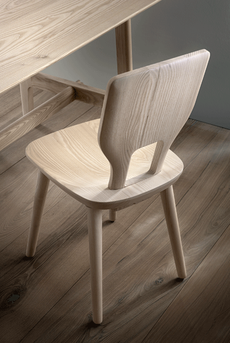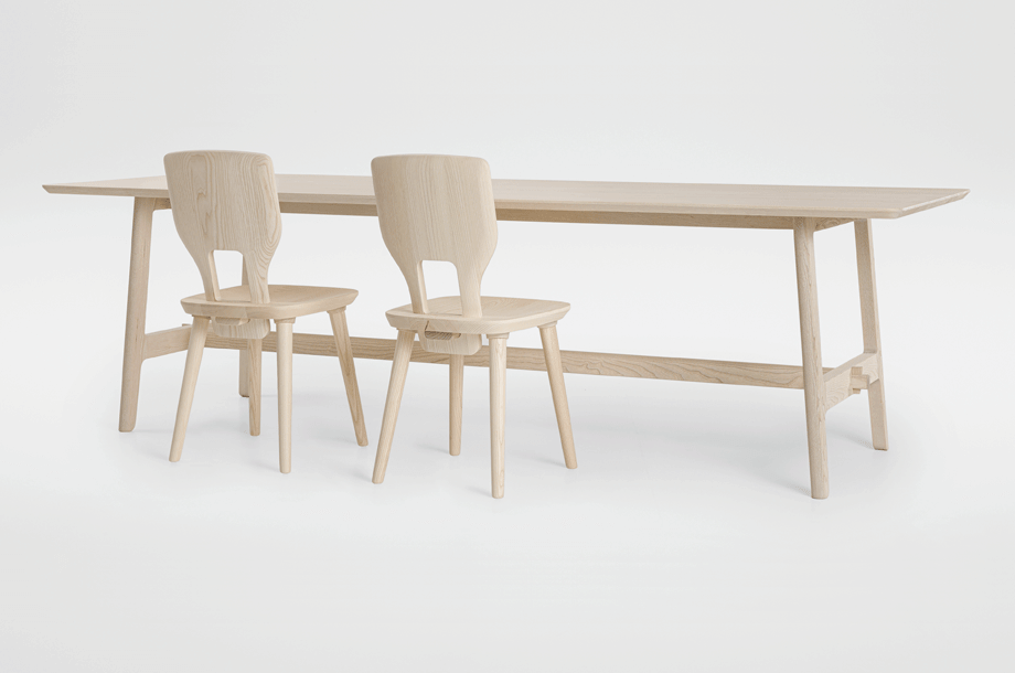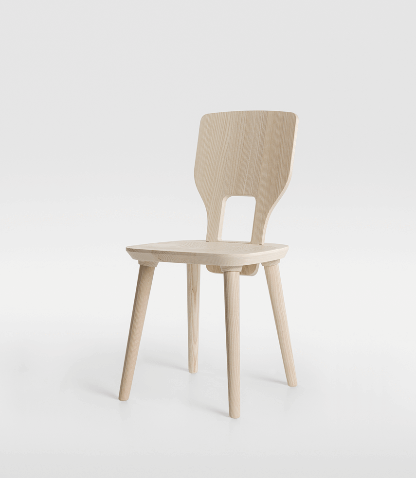 VNA CHAIR is a Stabelle, a chair made from planks inspired by traditional craftsmanship in the Alpine region. The name comes from a small mountain village in the Engadine, where designer Florian Hauswirth and ZEITRAUM met at the start of the project. In the mountain regions, everyday objects used to be made by local craftsmen or skilful farmers from locally available materials. Tables and chairs were made simply and solidly from planks and posts, sometimes decorated with ornaments.