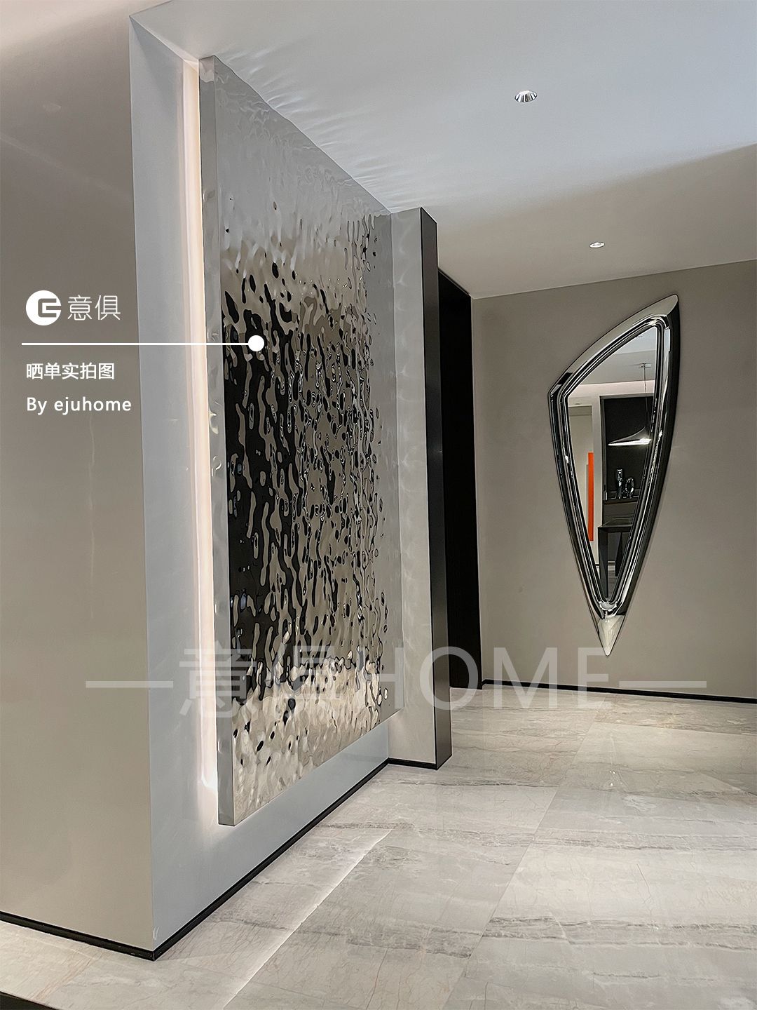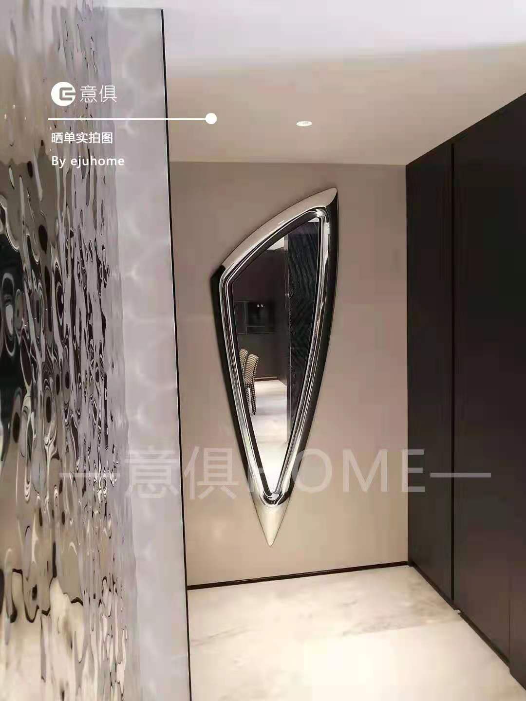 入門就是與眾不同,玄關處的墻壁上掛了Cattelan的鏡子,三角的造型,有棱有角的設計讓它極具時尚感!