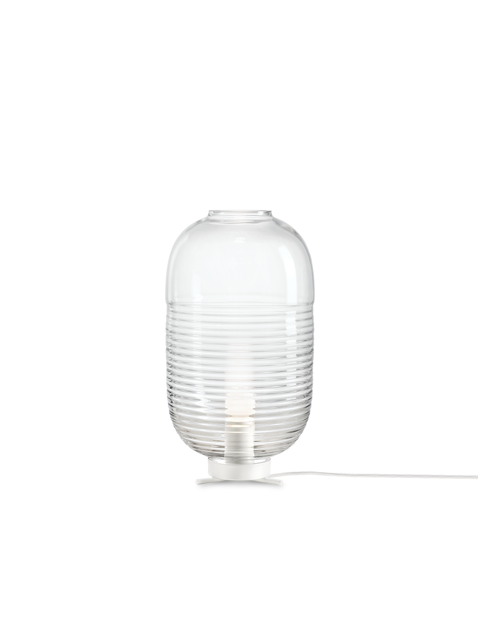 The ancient shape of the lantern, transformed by BOMMA and recast into glass, maintains its age-old symbolism of a messenger. The essential shape of the crystal Chinese lantern is replicated by hand-blowing into a wooden form. The resulting precise craft, despite its minimalist appearance, accentuates our prime devotion to traditional glassmaking principles in both top quality and perfect details. In their basic clear version, these lighting objects can be easily combined, forming random or even geometric groups. In smoke or white colors, Lantern adds soft ambient light to any interior.
