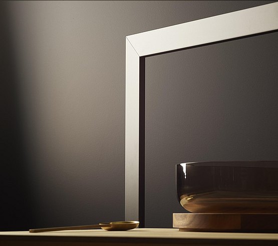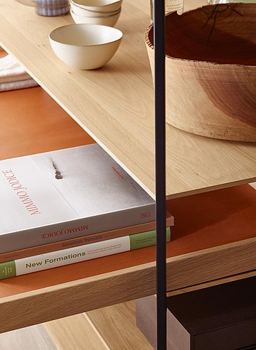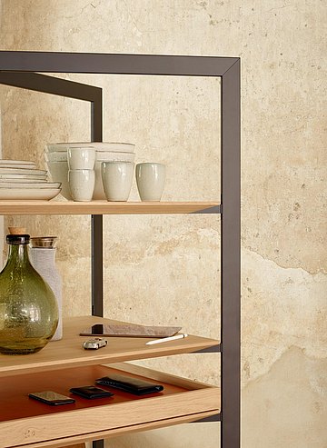 The bulthaup b Solitaire shelf unit is versatile in use. You can fit the frame with whatever you like, entirely how you wish. Shelfs, pull-out trays and grids on height-adjustable levels provide space for your ideas, whatever their size.