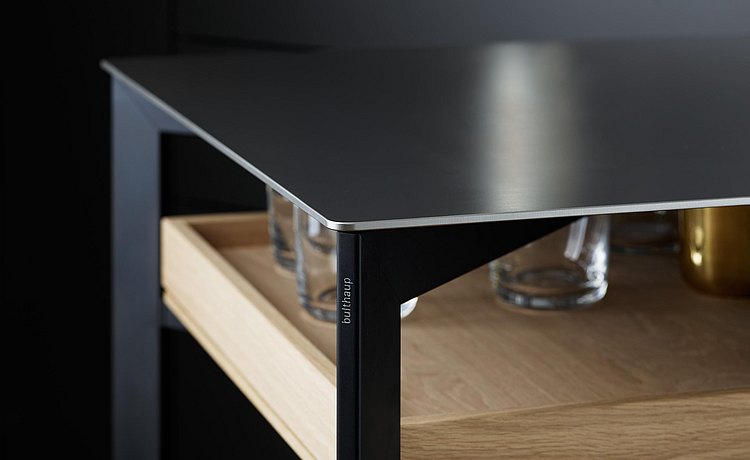 On our life journey we are accompanied by things that define us. These objects reflect our personality. bulthaup b Solitaire presents pieces that resonate with this quality. The solid yet only 0.5 cm-thick stainless steel top layer has a satin finish, which gives the surface a matte appearance and an expressive character.
