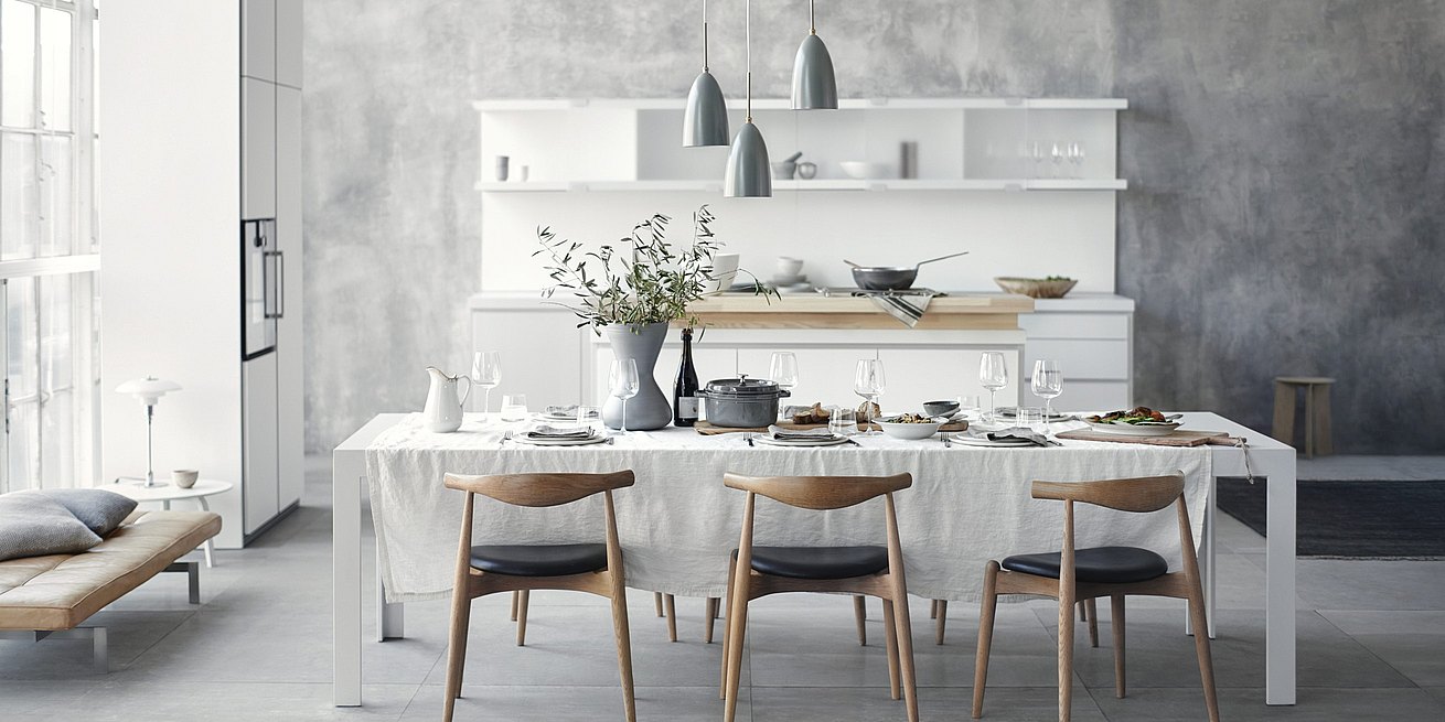 The bulthaup c2 table looks like a sculpture in the room. A precise finish and traditional craftsmanship guarantee a seamless transition from the laminate surface to the edge. The table appears as though it was made from a single mold.