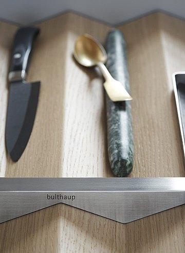 A centerpoint of communicationThe floor-standing island looks sculptural in the room and offers its user an abundance of storage space.