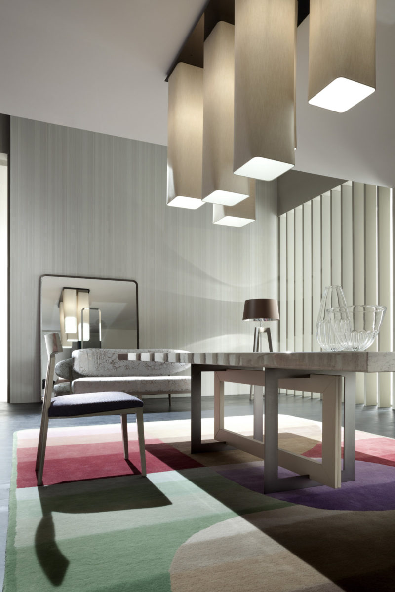 Model available in 8 different wood essences. It comes in 3 standard sizes and can be customized up to 310x120 cm