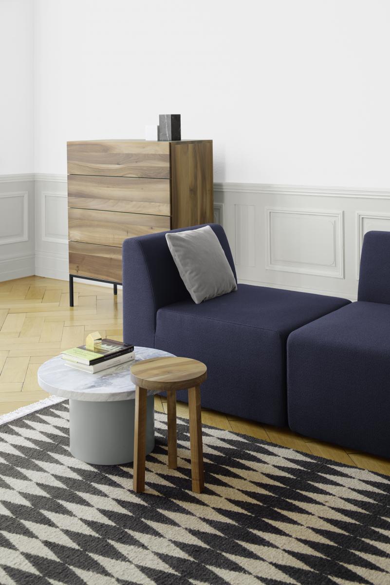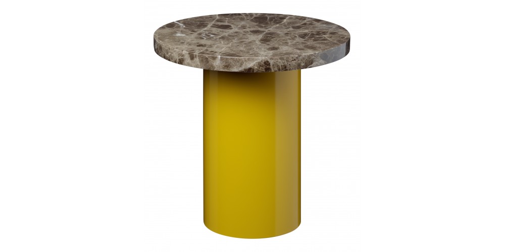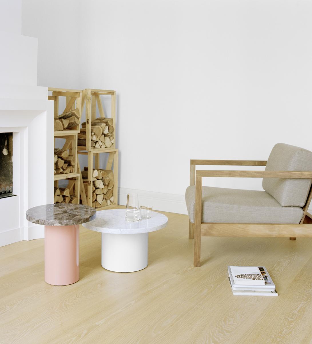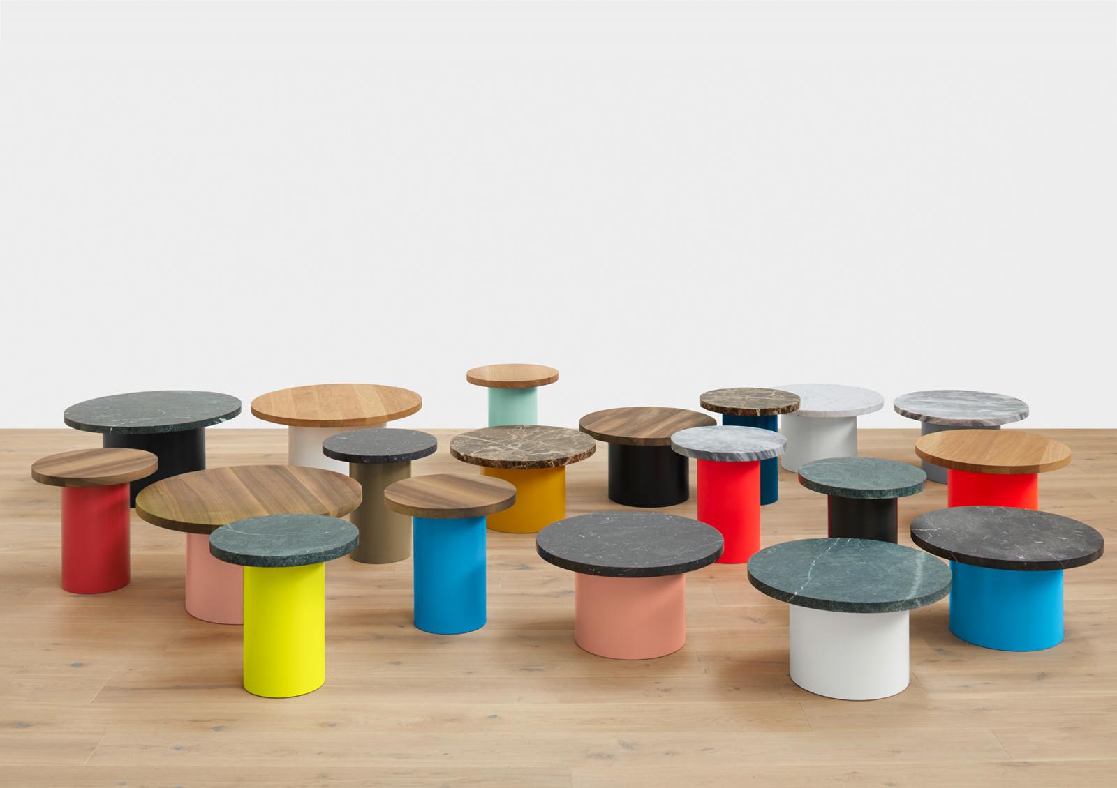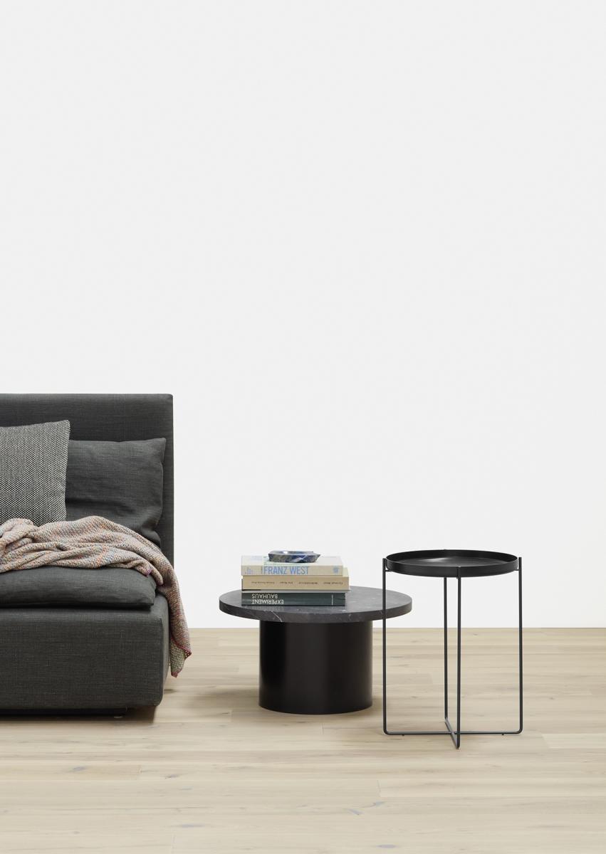 With the smart and playful side tables ENOKI, e15 introduces marble for the collection, applying it to novel form. Cleverly toying with material, colour and dimensions, the versatile side tables are presented in combinations of rich marble and solid wood and coloured steel. ENOKI is available in three different diameters and heights with a 30 MM (1 1/8 INCH) thick marble top, which are combined with harmonising or contrasting coloured steel bases in subtle or unusual combinations. In addition to other interesting combinations, pure shades of signal white and jet black for the entire table are also offered. The marble is equipped with a matt oiled finish, which is protective, yet requires maintenance. The side tables have adjustable feet and are delivered in two pieces.