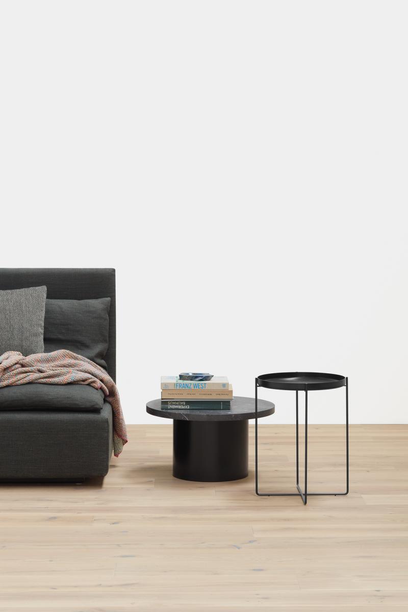 Reminiscent of ornately detailed oriental tea services, HABIBI as a tray or side table is a precious piece offering elegant possibilities for combination. The tray HABIBI in combination with the base can be used as an independent side table with generous diameters and optional heights available in polished brass, copper and stainless steel. Each piece is entirely unique, handmade and truly valuable, offering versatile use as the tray can be removed from the base and used as such on its own. Untreated by chemicals, natural oxidation processes create a beautiful patina over time, unless interrupted by applying conventional metal polishes. The surfaces are not lacquered. The endearing tray and side table HABIBI is additionally available in powder-coated aluminium in the colours signal white and jet black. The tray HABIBI is delivered as one piece whereas the side table with the base is delivered in two pieces.