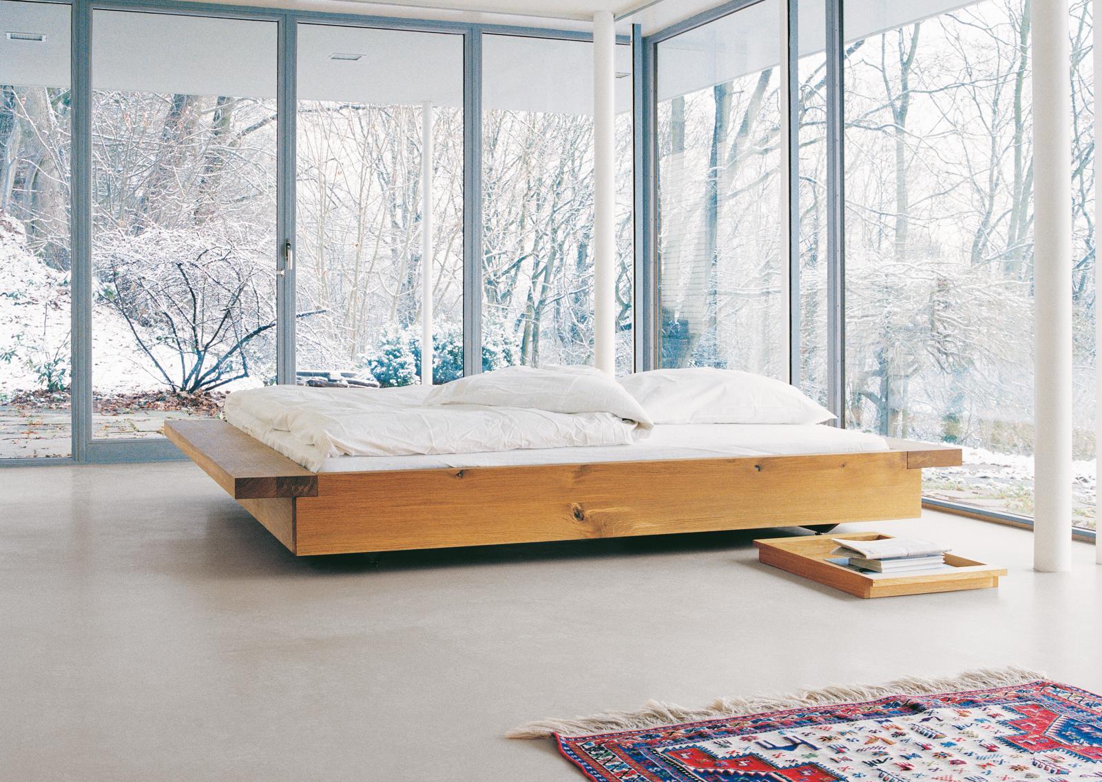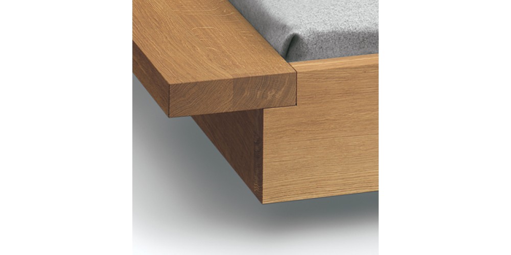 The bed NOAH with its architectural form is especially compelling due to the extended frame on both sides that can also act as a shelf. The floating character of NOAH bed stands in an interesting contrast to the solid wood material.