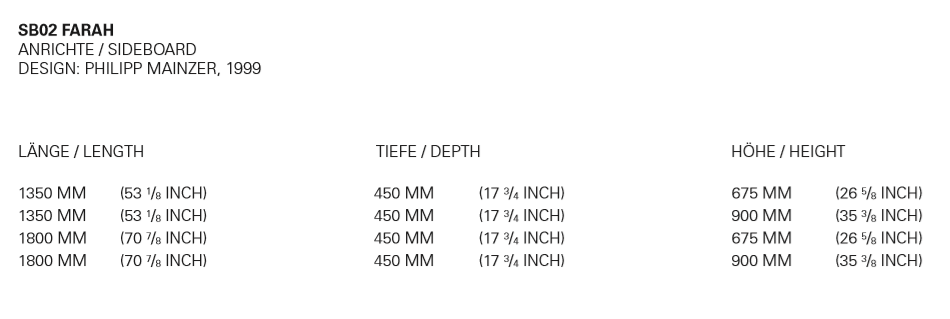 The sideboard FARAH is a refined storage solution. The horizontal display of the solid wood grain makes each sideboard unique and elegantly highlights the combination of solid wood and a seamless stainless steel frame. Aluminium strips inserted inside the door panels ensure further stability, enabling a solid wooden front structure without a visible supporting frame. The frame is also available in powder-coated steel.
