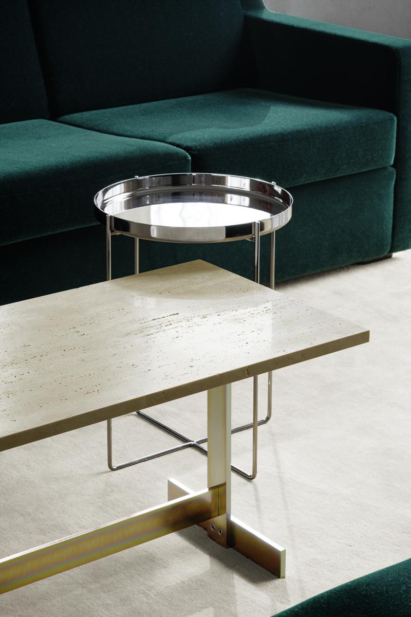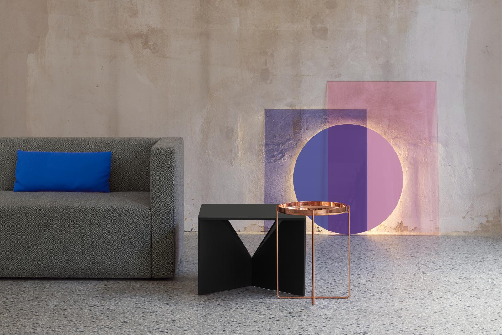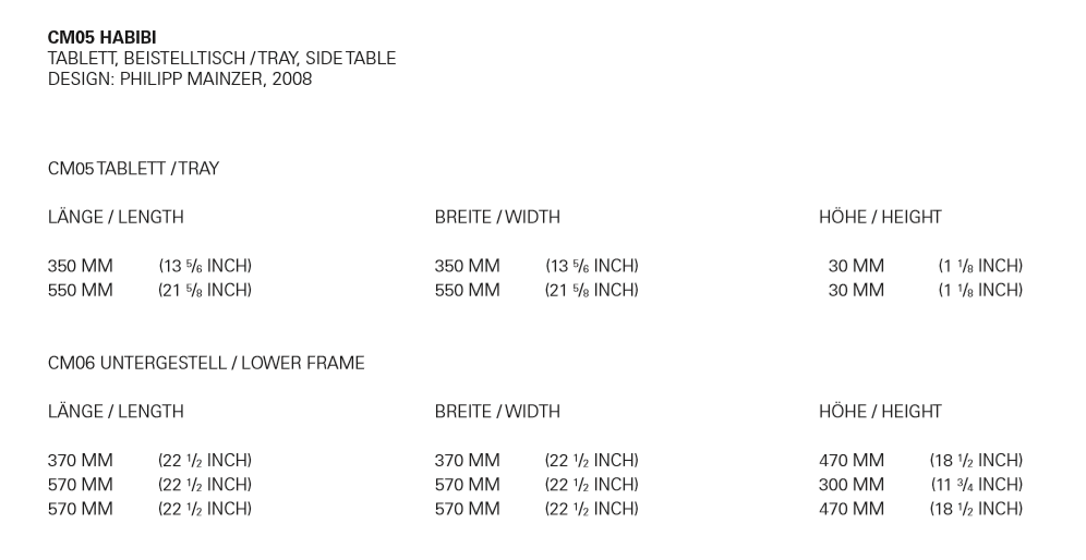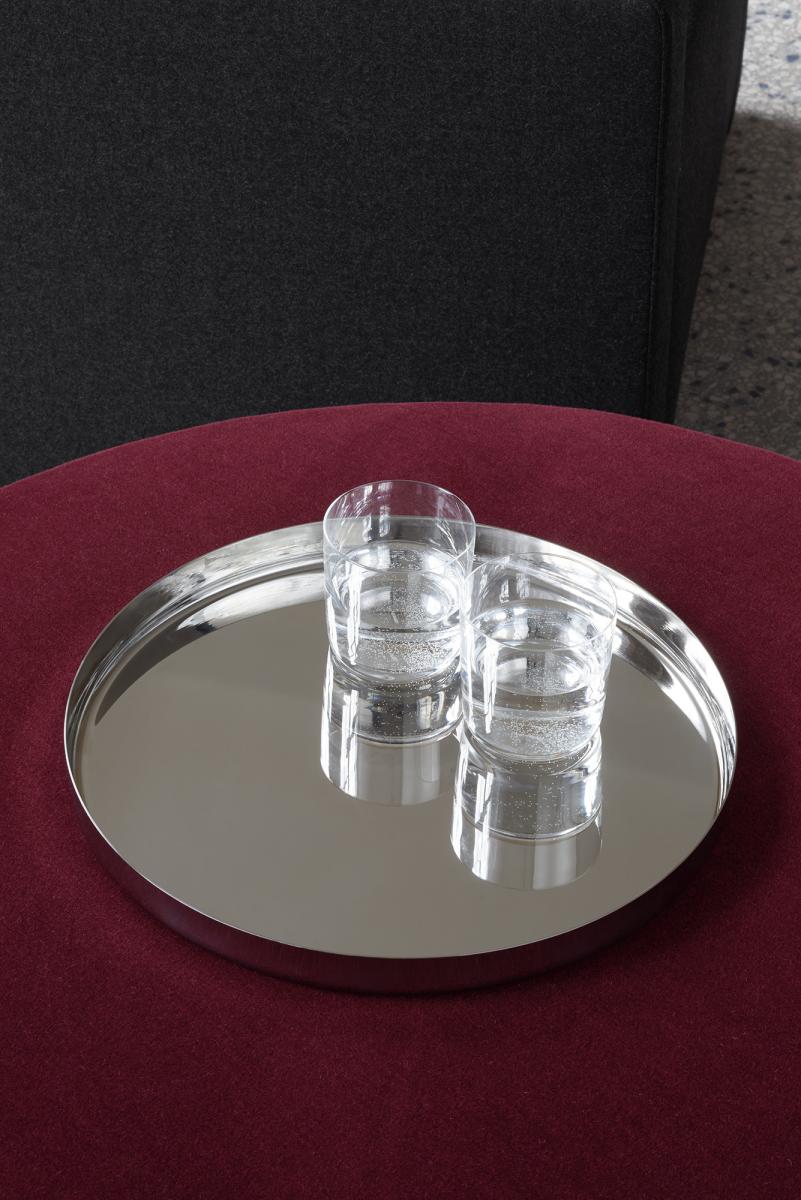 Reminiscent of ornately detailed oriental tea services, HABIBI as a tray is a precious piece offering elegant possibilities for combination. The tray HABIBI in combination with the base made from solid material can be used as an independent side table with generous diameters and optional heights available in polished brass, copper and stainless steel. Untreated by chemicals, natural oxidation processes create a beautiful patina over time, unless interrupted by applying conventional metal polishes. The surfaces are not lacquered. The endearing tray HABIBI is additionally available in powder-coated aluminium in jet black.