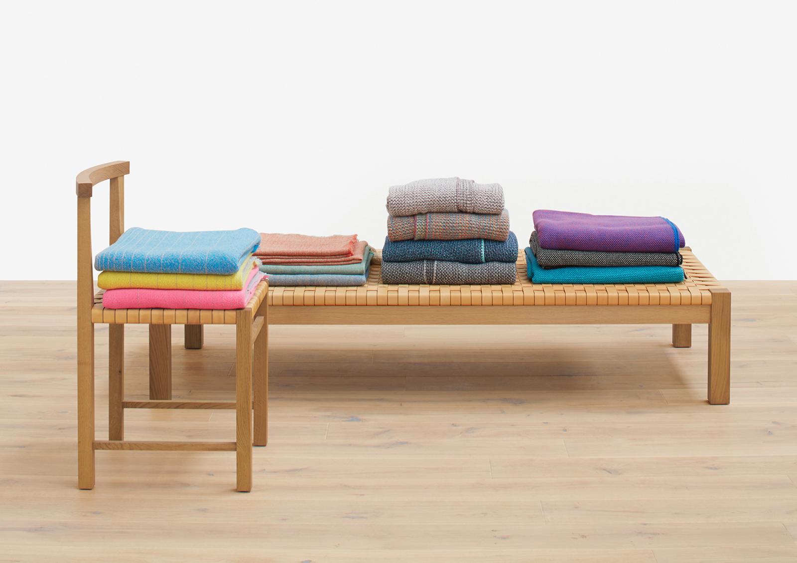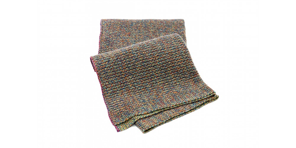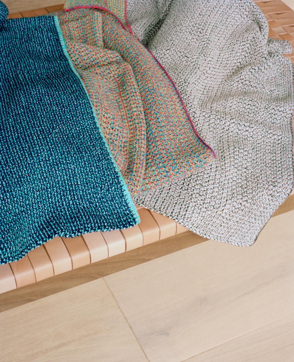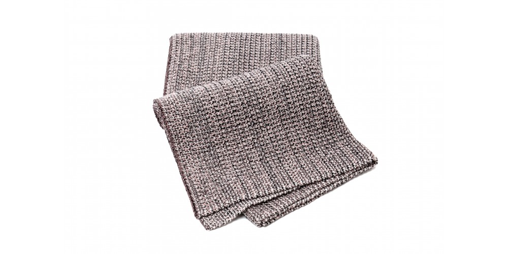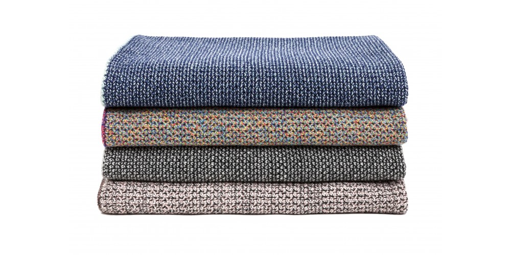 The luxuriously soft cashmere and wool blanket RETE is knitted in northern Italy and features intriguing textures and colours. Its contents are 30% cashmere and 70% wool.