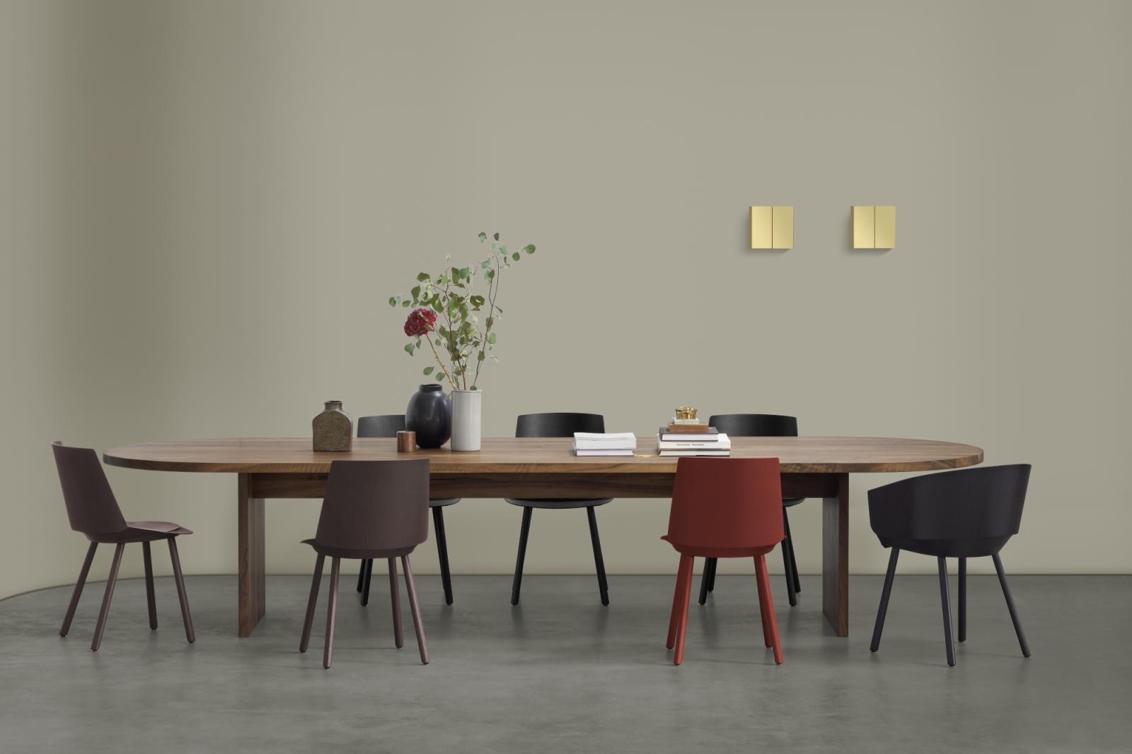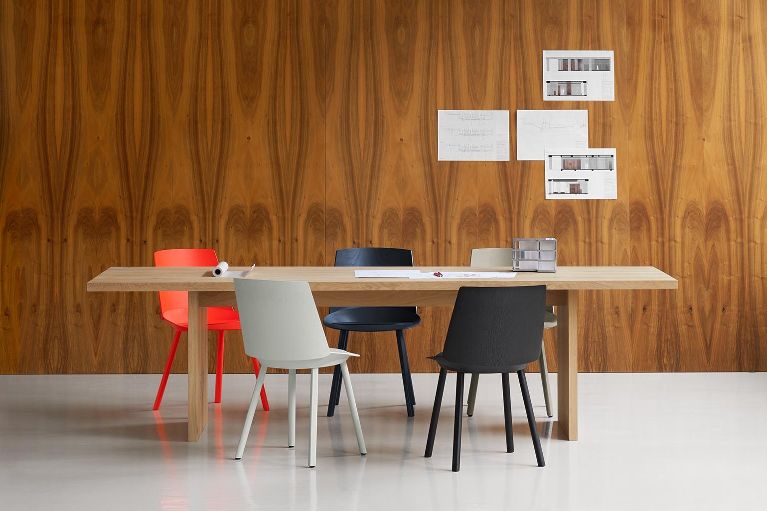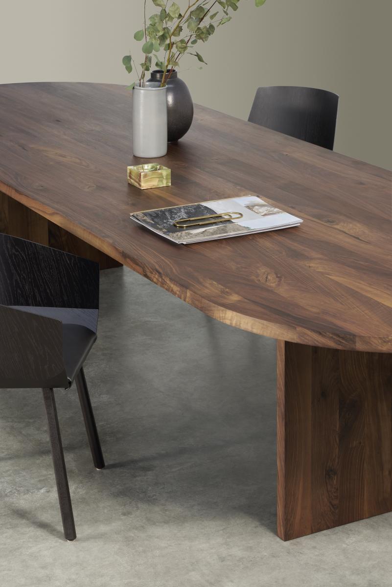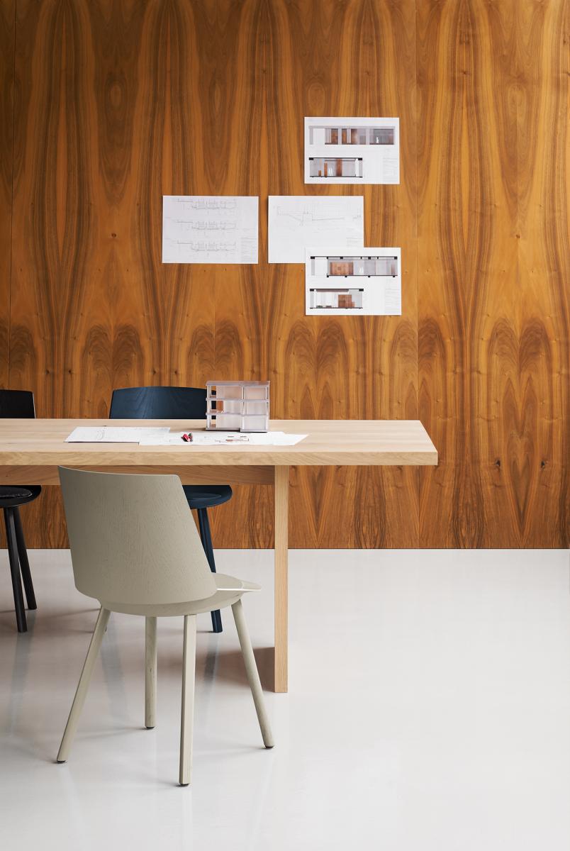 Inspired by Japanese carpentry, table AS HIDA emphasises e15’s philosophy of pure use of materials and balanced proportions to make a highly functional table for private or contract spaces. ASHIDA showcases the natural beauty and strength of solid wood and is available in white pigmented or oiled European oak and walnut. With its two central brackets, it is ideally suited as a conference table with concealed wire management.