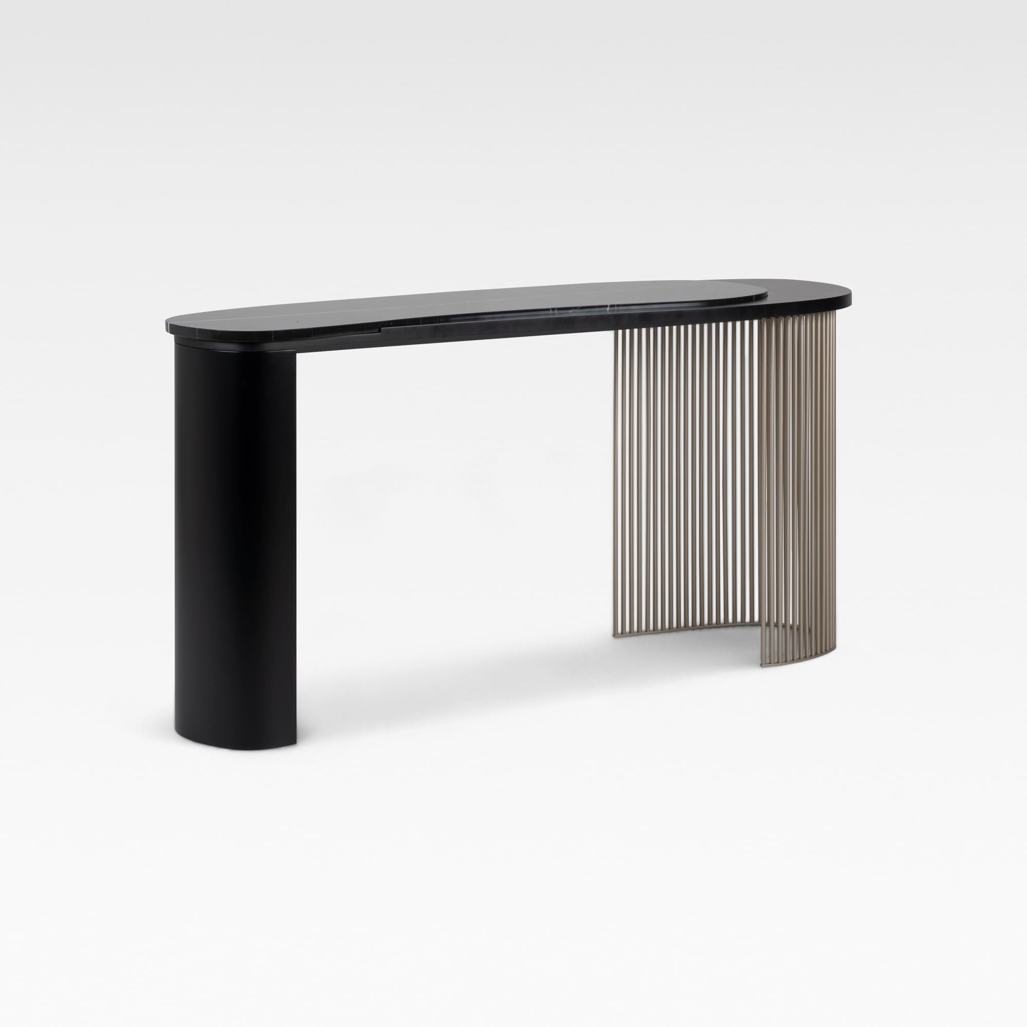 The Castelo marble console table pays tribute to Portugal’s historic castles, embodying their timeless grandeur and enduring strength through a contemporary lens. Its curved marble tabletop rests gracefully on an architectural base of sleek metal supports, evoking a sense of both stability and refinement. With its thoughtful design and meticulous craftsmanship, the Castelo marble console table stands as an elegant statement piece, effortlessly captivating attention from the very first glance.