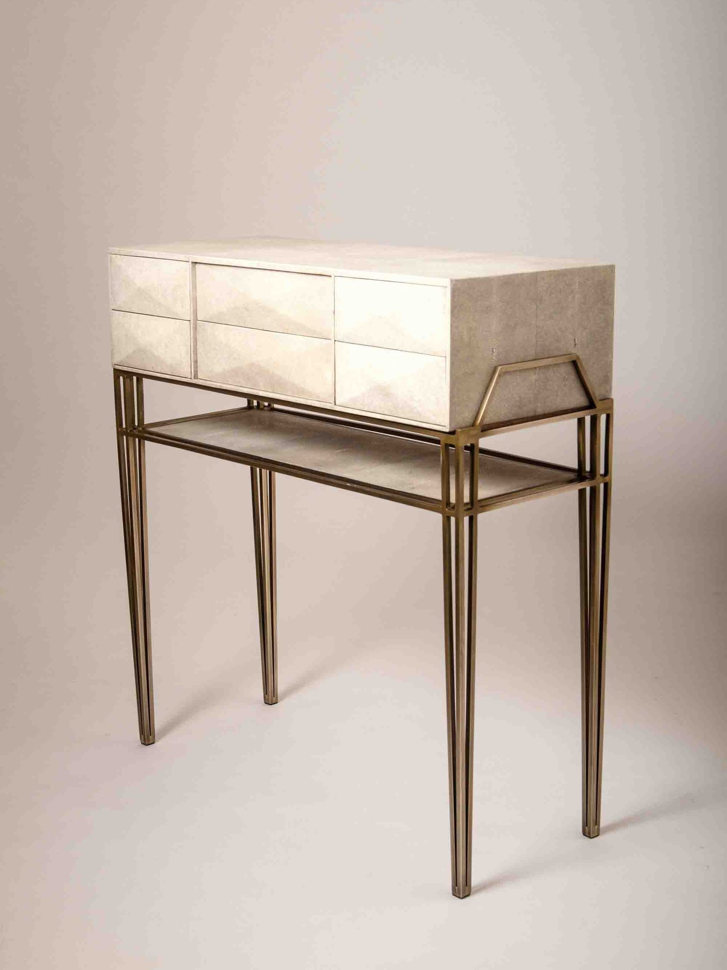 The Cosima 8 Console, is both practical and stunning in design. This smaller console includes push-through drawers that can used to store anything from jewelry to stationary.