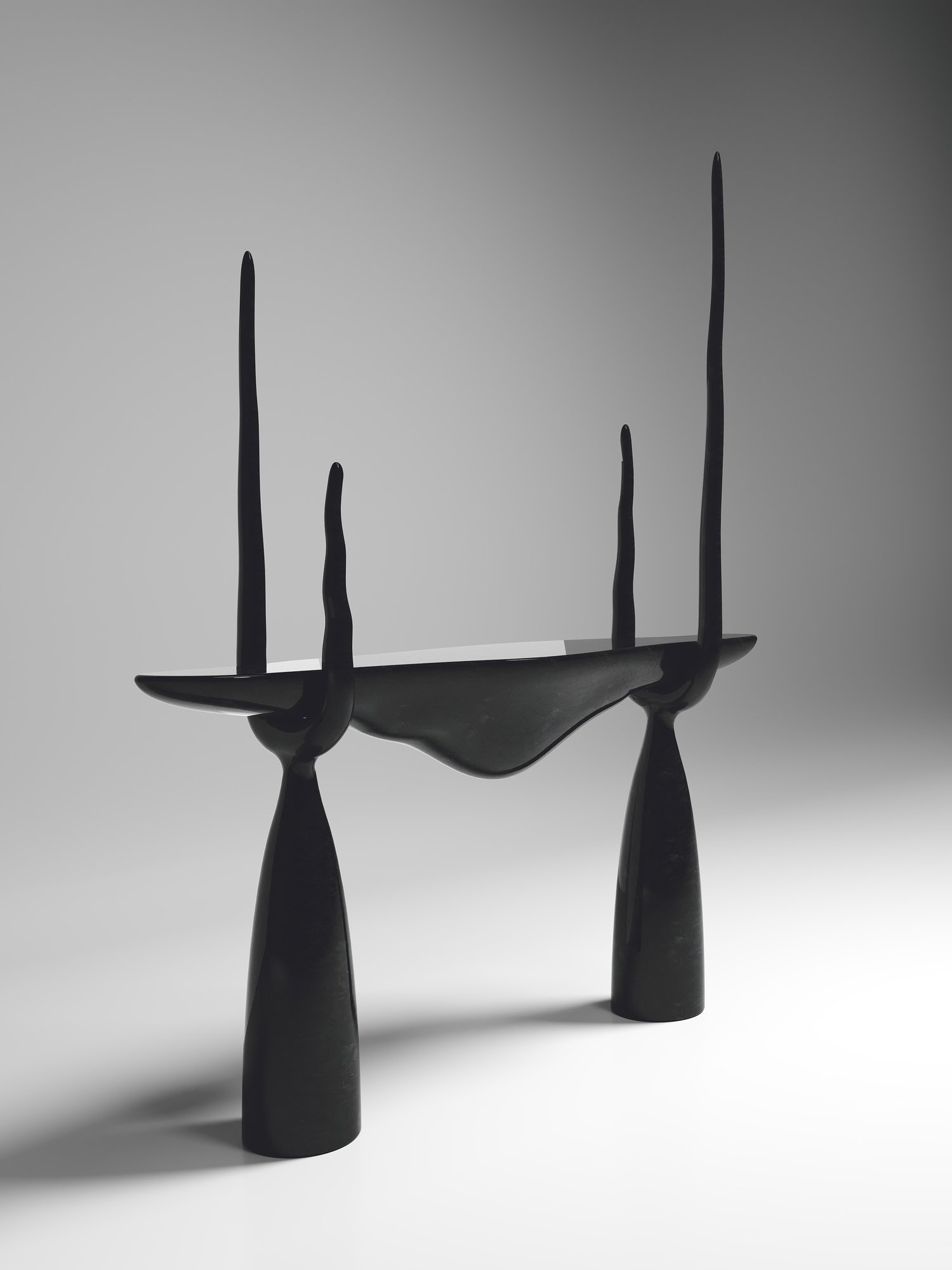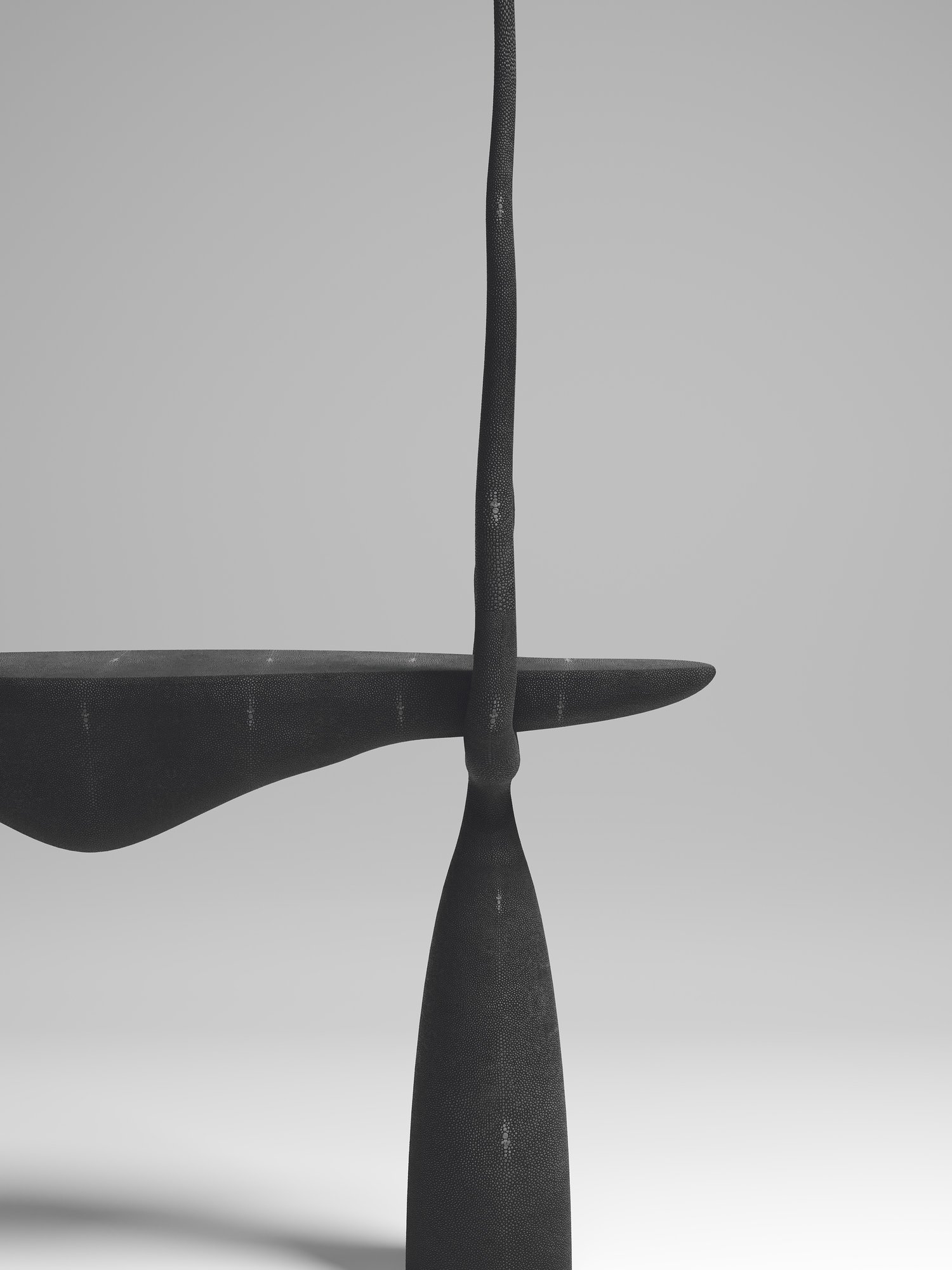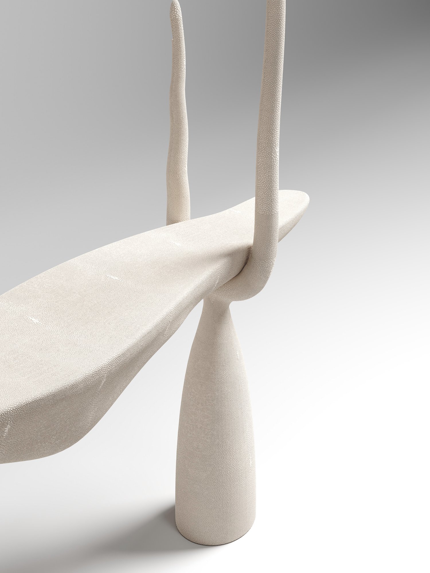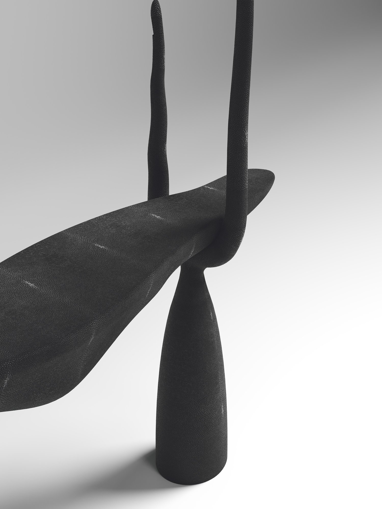 The Sylvie Console is an ethereal and sculptural piece. This table is inspired by the iconic Sylvie Chair by R&Y Augousti; one of our very first designs, paired together to create a majestic and stunning statement in any space. This piece is shown in black shagreen but custom color or sizing are available on request. Other versions can be seen at end of image slide.