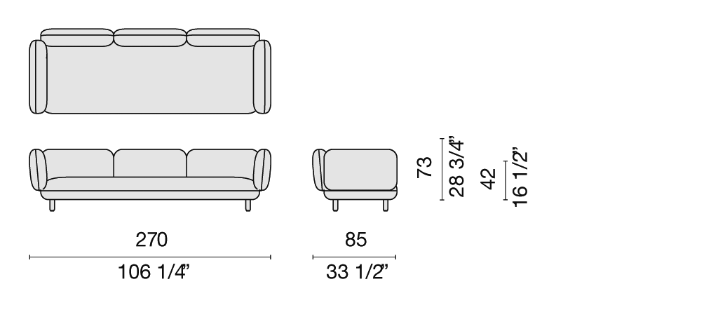 Designed by Aisslinger and Bunyaprasit, the Hobo Contract sofa is a family of composable seats that includes a two and three-seat sofa, a chaise longue (right or left), right and left end units, two and three-seat benches with a backrest on left or right, and a pouf in two sizes.