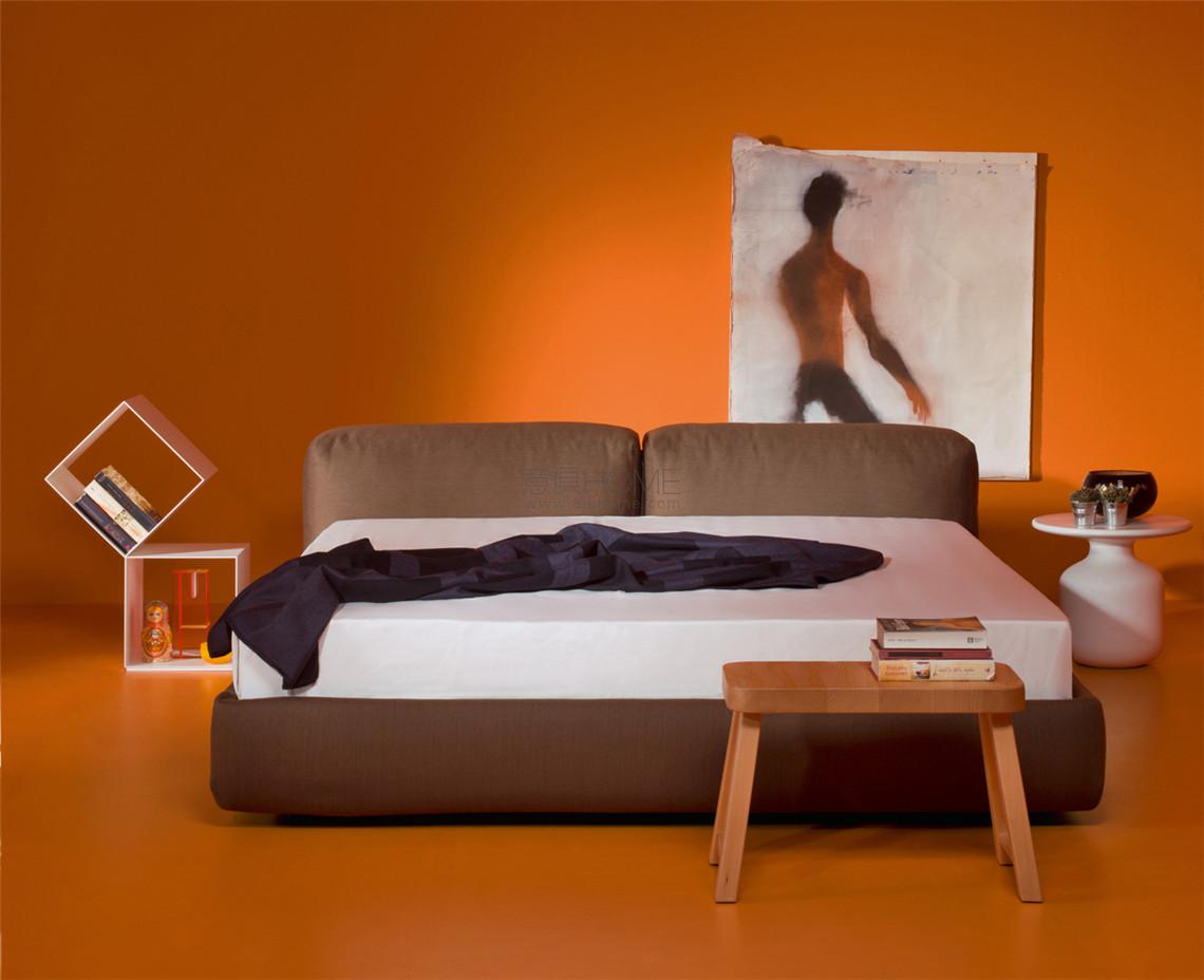 The Superoblong Bed is padded with multi-density polyurethane foam, fibre and feather; it also has a soft backrest that resembles oversized pillows; the cover is removable and is available in leathers and fabrics from the collection.