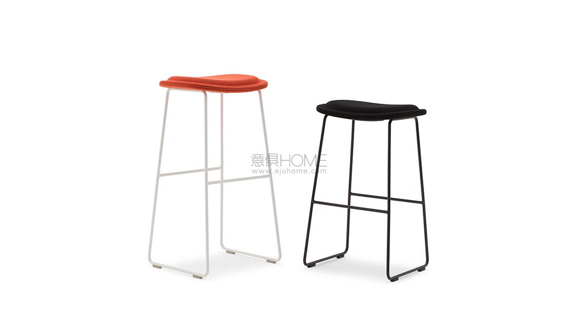 The structure of these seats is made of beech plywood, with a fixed cover in the fabrics and leathers from the collection. The base is built of stainless steel with a satined or matte varnished finish in white, mud or anthracite.