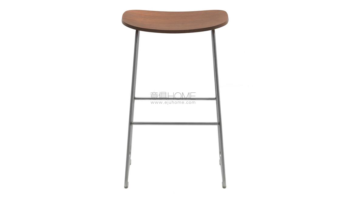 Suitable for diverse settings, from cafés to restaurants or informal lounges, the seat of this stool is available in ash wood with a bleached, black-stained or wengé finish. Alternatively, it can be padded with polyurethane foam with fixed upholstery in a selection of fabrics or leathers in the collection. The base is made of stainless steel with either a satined or matte-lacquered finish, in white, mud or anthracite.