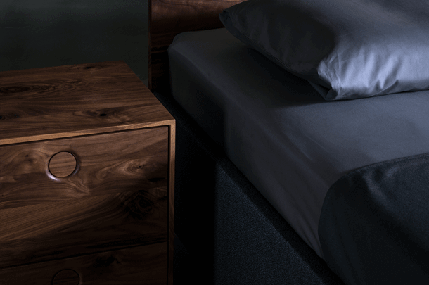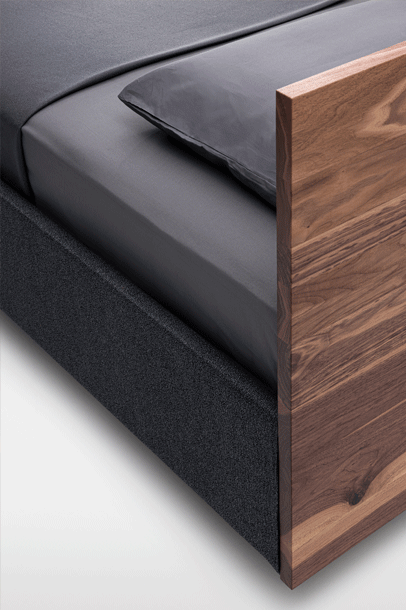 The purist design of the SIMPLE bed family puts the living material in the foreground. The lightness of the construction is enhanced by the floating frame.