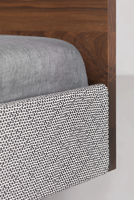 SIMPLE SOFT – the floating upholstered bed. The formal reduction of the SIMPLE collection was carried over to the upholstered bed. The fabric or leather-based design of the SIMPLE SOFT bed is available in three versions: a basic version without a headboard, a fully upholstered bed with an upholstered headboard and an upholstered bed frame with a wooden headboard. The cover is manufactured in one piece and can be easily removed for cleaning.