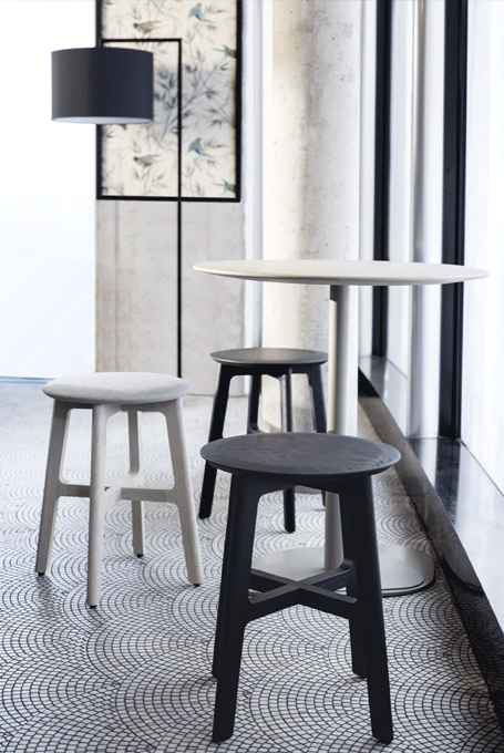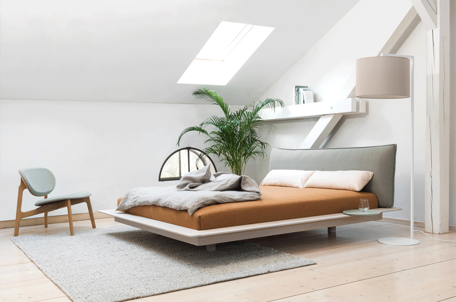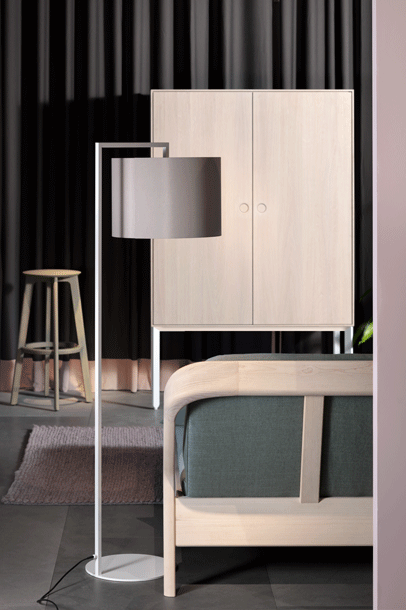 The desire for simplicity and the pleasure in pure design led to a geometrical abstraction of natural branch forms. The NOON range of lamps is rigidly constructed, the textile lampshades give a soft light. The matt black or matt white powder coated finish gives the iron a soft and warm appearance. The intrinsic value of the lamps is a product of material and hand-crafted details.