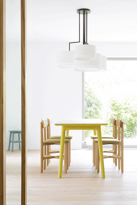 The desire for simplicity and the pleasure in pure design led to a geometrical abstraction of natural branch forms. The NOON range of lamps is rigidly constructed, the textile lampshades give a soft light. The matt black or matt white powder coated finish gives the iron a soft and warm appearance. The intrinsic value of the lamps is a product of material and hand-crafted details.