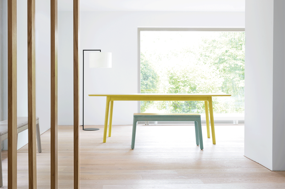 The E8 BANK supplements the table of the same name. The dimensions of the E8 BANK are coordinated to make possible to slide it under the E8 table between its legs to save space. ?The bench intentionally has no overhangs like the table, because I didn`t want the form of the bench to copy that of the table.“ explains designer Mathias Hahn. The seat is available either in wood or upholstered.