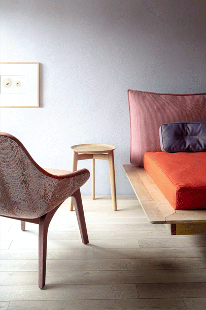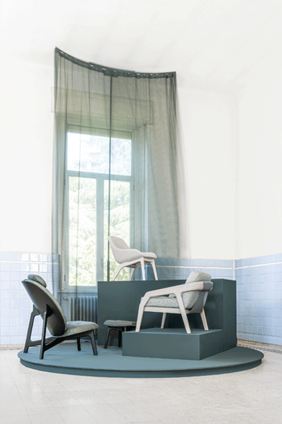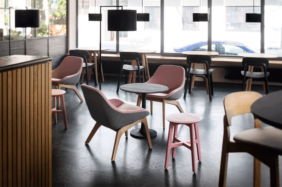 MORPH LOUNGE brings together an unusual combination of materials: The solid wood frame carries a comfortable upholstered shell. The positioning of the legs gives the chair a unique posture, as if it had a support and a free leg. The softly formed seat invites to take a seat. Due to its compact dimensions this straightforward chair exudes an air of lightness that requires only a small area. He feels at home in a wide diversity of spacial situations.