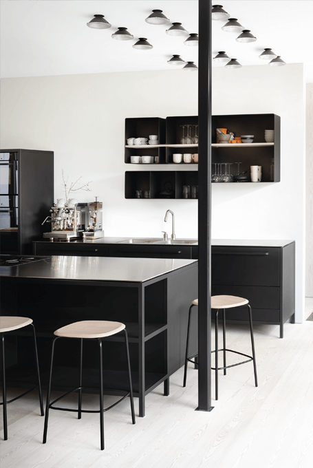 OKITO STOOL is available in three seating heights: in dining table height 46 cm, as kitchen stool in height of 65 cm and as bar stool in height of 80 cm. The heart of the minimalist stool is the solid wood seat. With its CNC-milled recesses, the solid wood seat takes up the chair frame. All connections are screwed without being visible on the top. The small OKITO STOOL in h 46 is stackable and can be shipped flat packaged, which significantly reduces the packaging size.