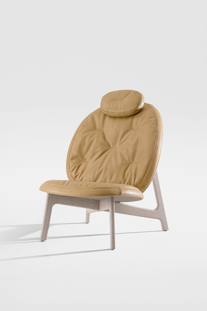 This expressive gesture makes the lounger appear sculptural and is at the same time an invitation to make yourself comfortable – put your feet up on ZENSO POUF. The striking cross-wood frame supports and carries the cantilevered back shell. The adjustable head cushion can be individually adjusted to the respective size. The lounger is characterised by a high level of seating comfort.
