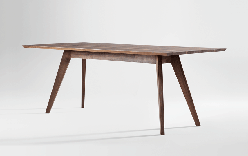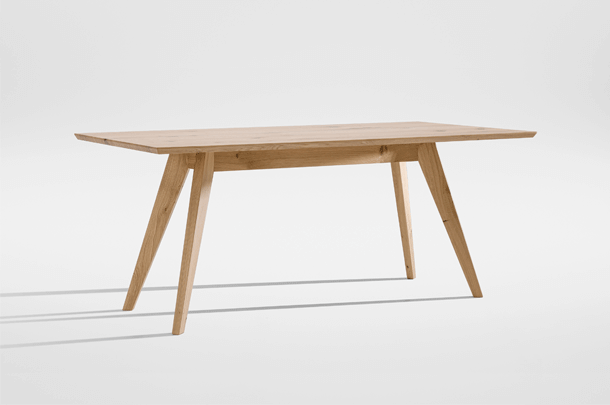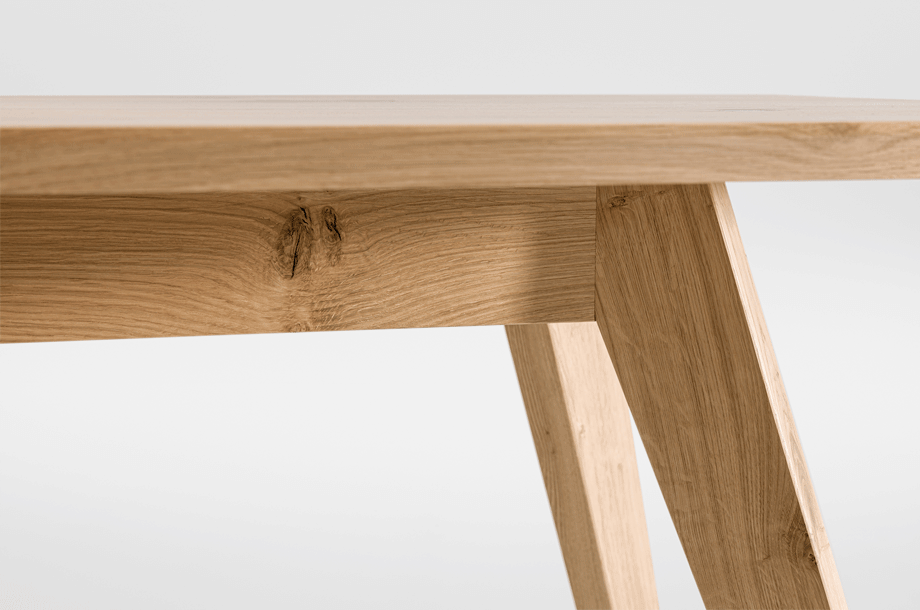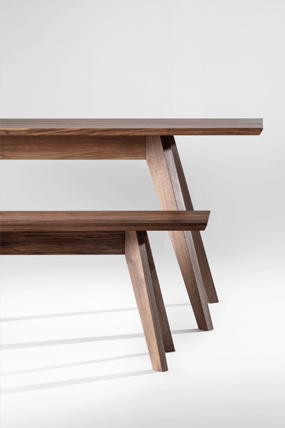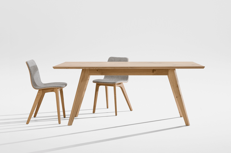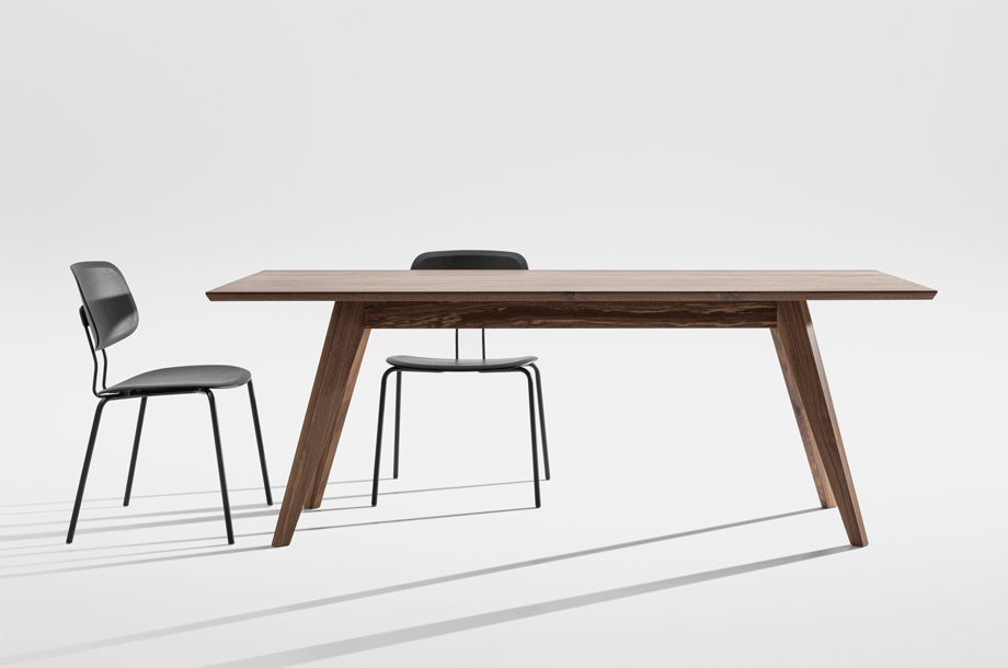 The table CENA shows great strength of character. The bevelled table top gives it a lightness and dynamic contrasting nicely with the reassuringly solid trestle. The small version can be used as a coffee or occasional table, the large CENA as a dining table. CENA table tops are available in rectangular, hyperelliptical and oval, round and square. With regard to special dimensions, CENA is very variable.