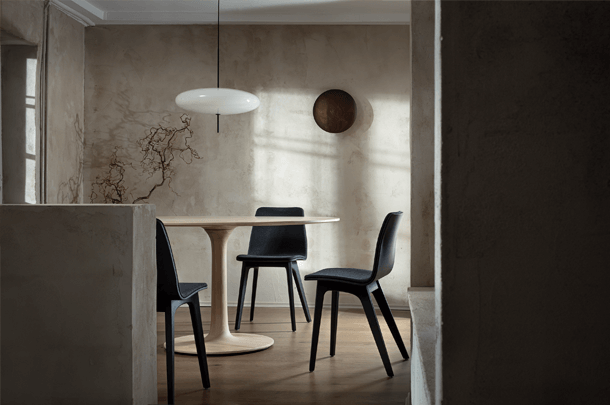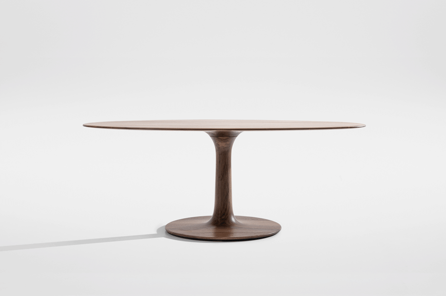 The archaic form of this table speaks for itself. It owes its unique identity to the feeling that it turns around its own axis. It is present in the room as a feature and fixed on its slim-line middle foot in solid wood. To all appearances, this round table has been carved from one piece of wood. Wherever you place it, TURNTABLE is always in the right place and is always a focus of attention.