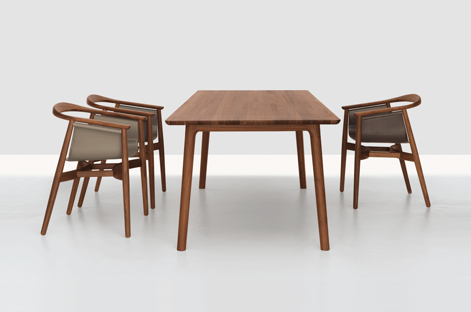 Designer Mathias Hahn named the E8 table after his former home in London. It was there that the model for his design stood for years: a makeshift table dating from the post-war era, narrow, long and with overhangs. The format appealed to Mathias Hahn so much that he used it as the basis for his own design. The E8 table also stands out thanks to its narrowness, length and extreme projections at each end. Thanks to its long working surface, the table can be used as a kitchen table or a work table as required.