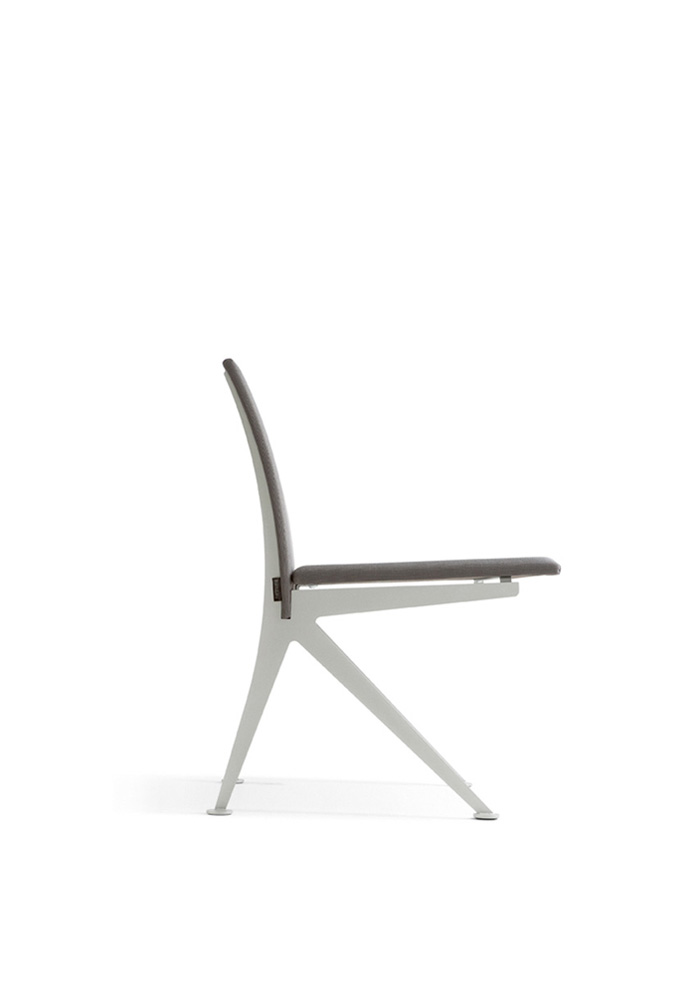 Chair for waiting areas and conference rooms, with aluminium painted steel frame, available in monocolour or bicolor upholstery.