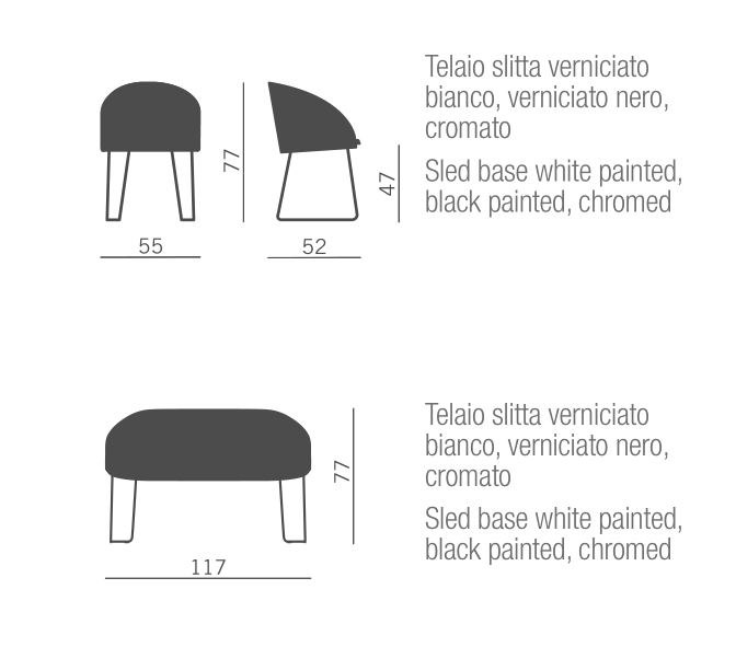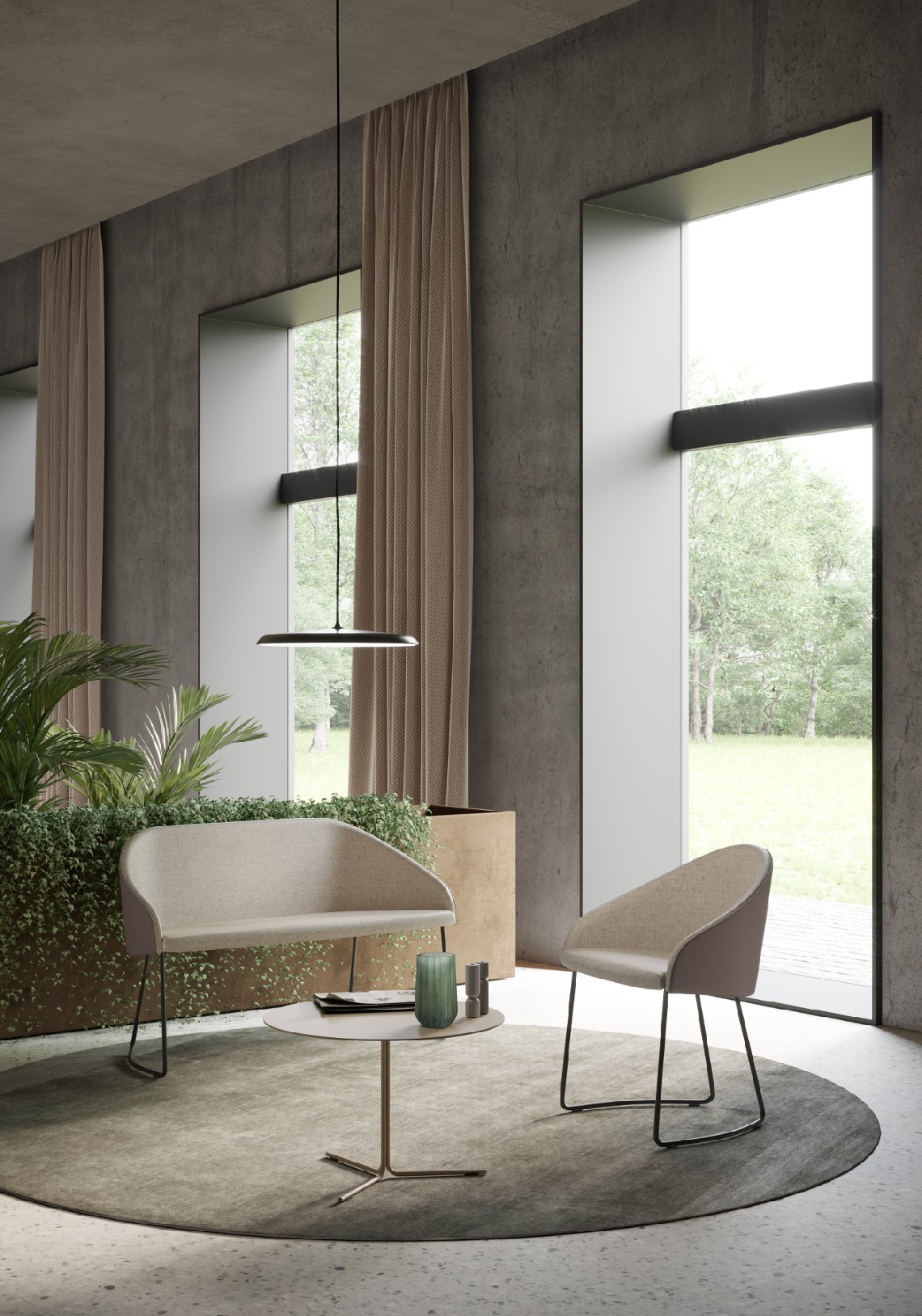 Armchair and 2-seater sofa suitable for waiting areas and meeting rooms, available in the following versions: