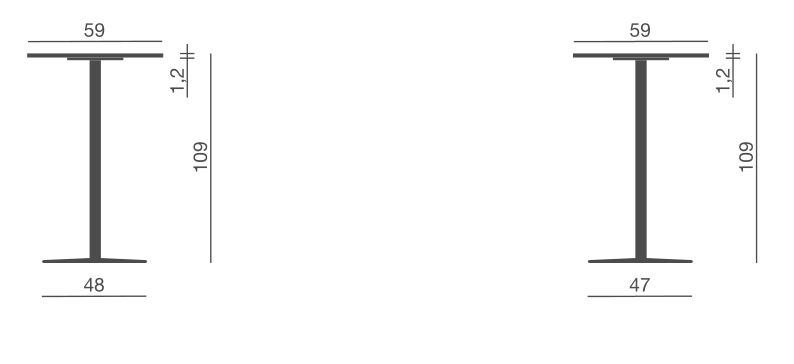 - HPL (High Pressure Laminate) round or square tops with thickness 12 mm in white