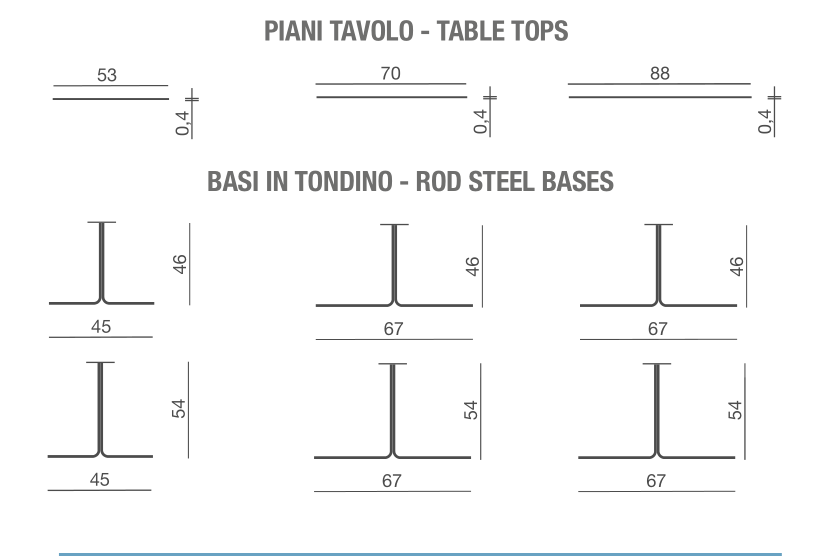 - Steel top thickness 4mm. white - yellow - orange - dove-colour - lava painted.