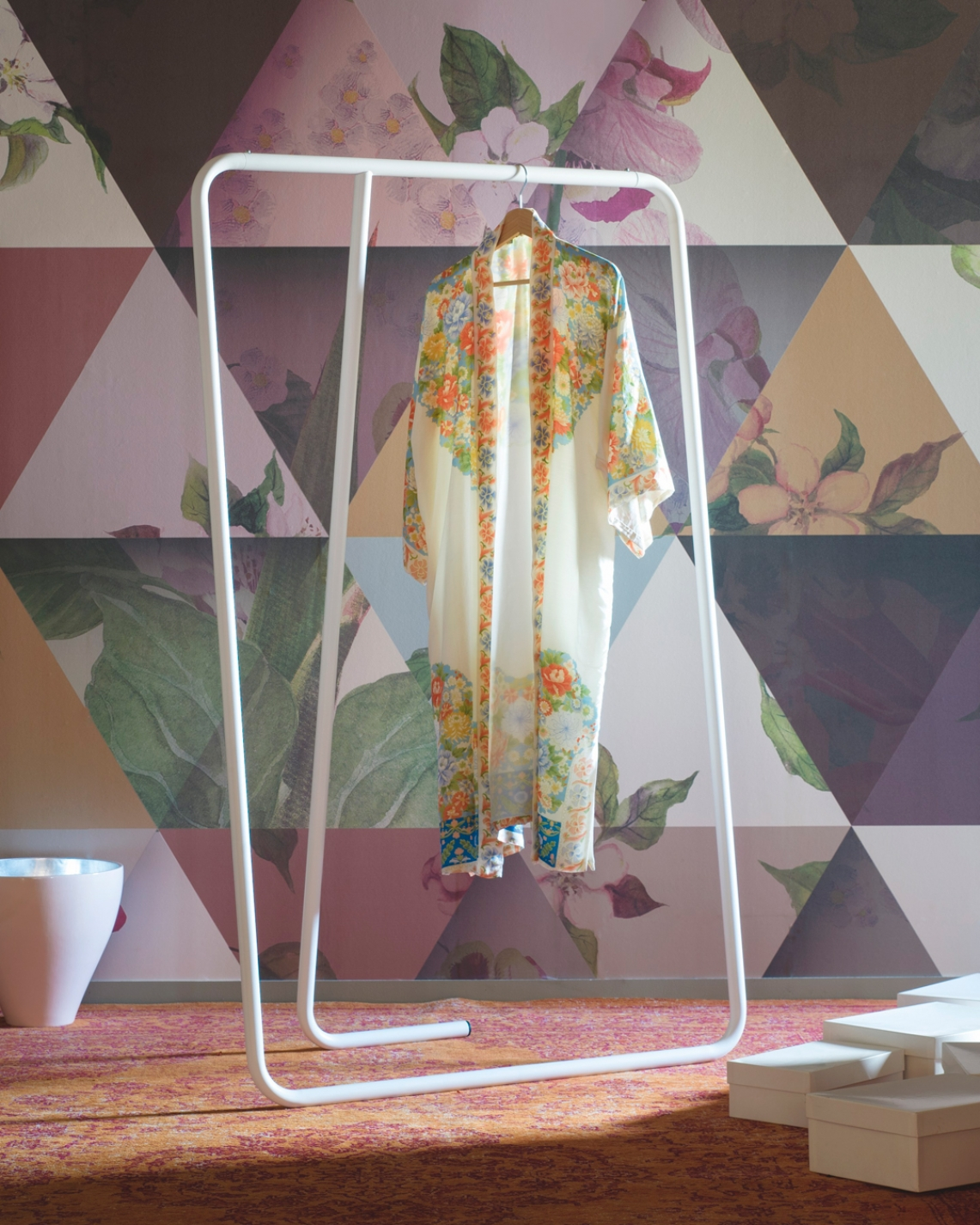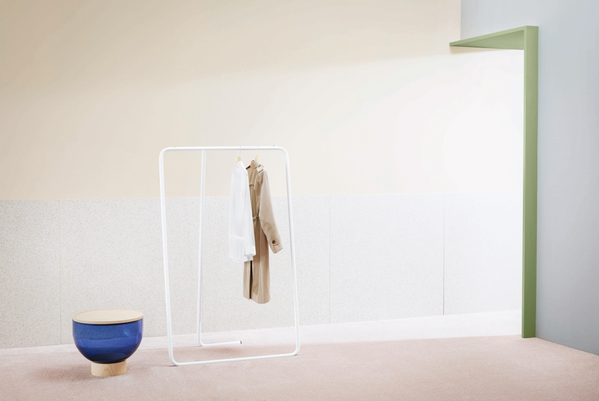 Ideale per risolvere situazioni d’ingresso, Benvenuto invita ad appoggiare le chiavi e appendere il cappotto, facendo dello specchio un complemento multifunzionale.
