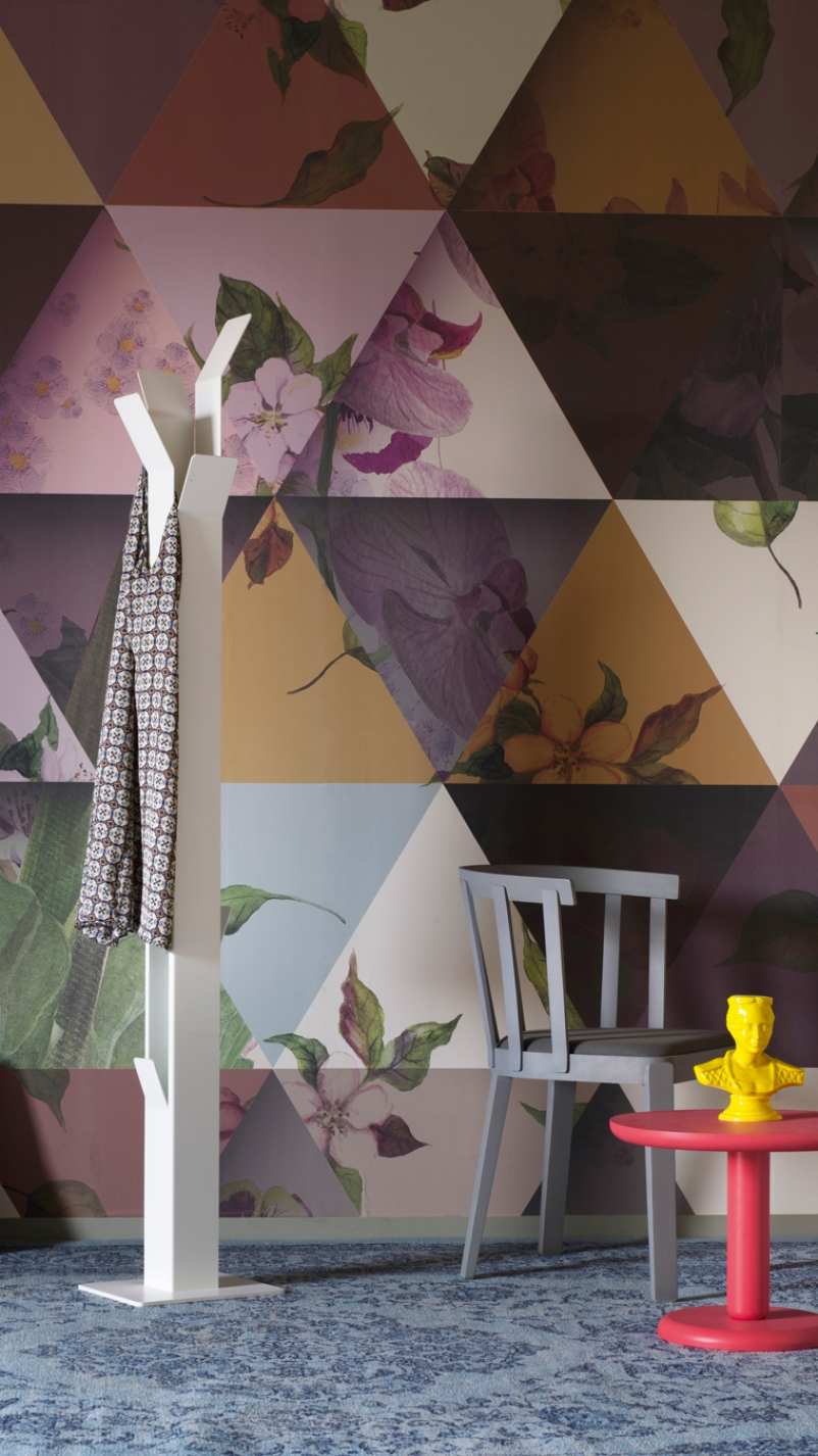 Ideale per risolvere situazioni d’ingresso, Benvenuto invita ad appoggiare le chiavi e appendere il cappotto, facendo dello specchio un complemento multifunzionale.