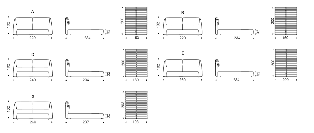 Further softness and a sense of cosiness is provided by the large upholstered headboard, folded in on itself like a gentle wave and slightly overhanging the bed frame. Simon is pure design poetry, a cross between soft spaces and fine materials to furnish a modern master bedroom with taste and elegance.