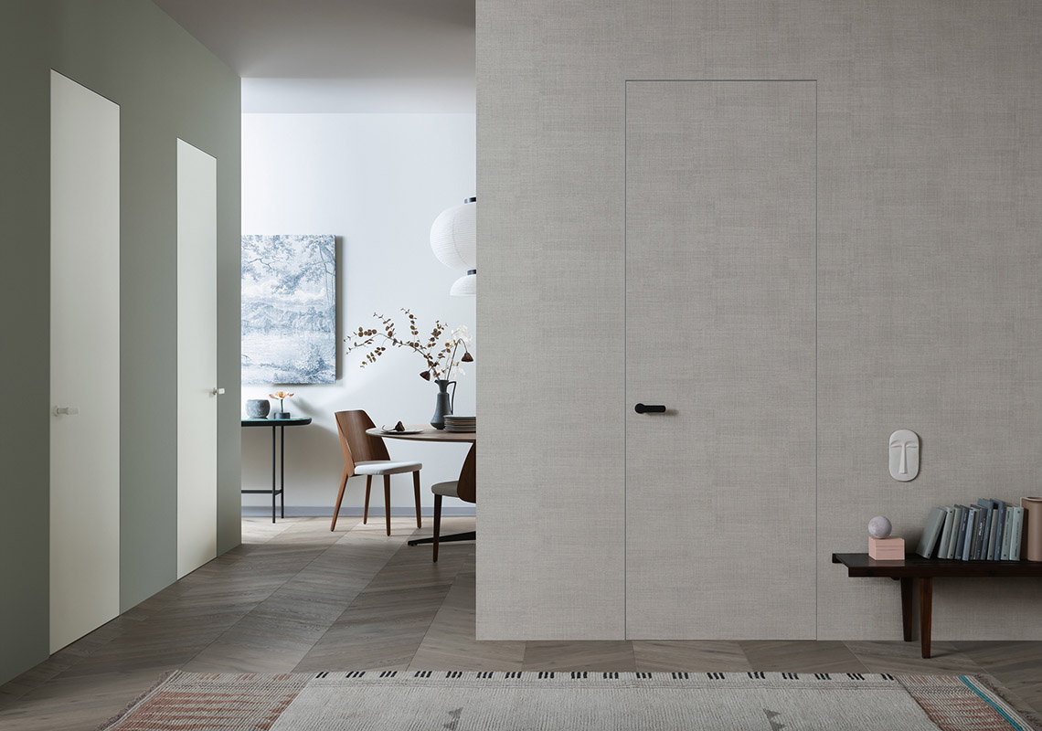 La porta per interni Altaj, disegnata da SBGA, è concepita per andare oltre il minimalismo della porta a filo muro. Il modello infatti non scompare nella parete, ma è anzi evidenziato dal profilo metallico che incornicia l’anta e ne esalta la finitura.
