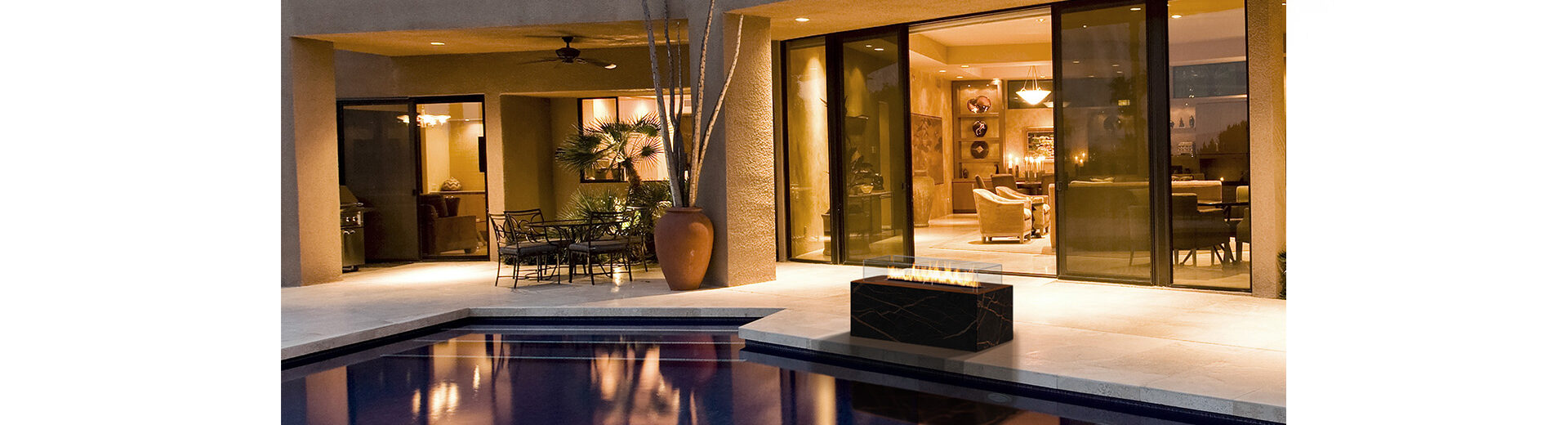 Cabo is an automatic ethanol fireplace with BEV Technology that allows you to enjoy the cozy ambiance indoors and outdoors. It combines the highest safety standards with exceptional design and high-end materials for a unique fire experience. This freestanding fireplace can be applied in indoor spaces as well as gardens and patios.