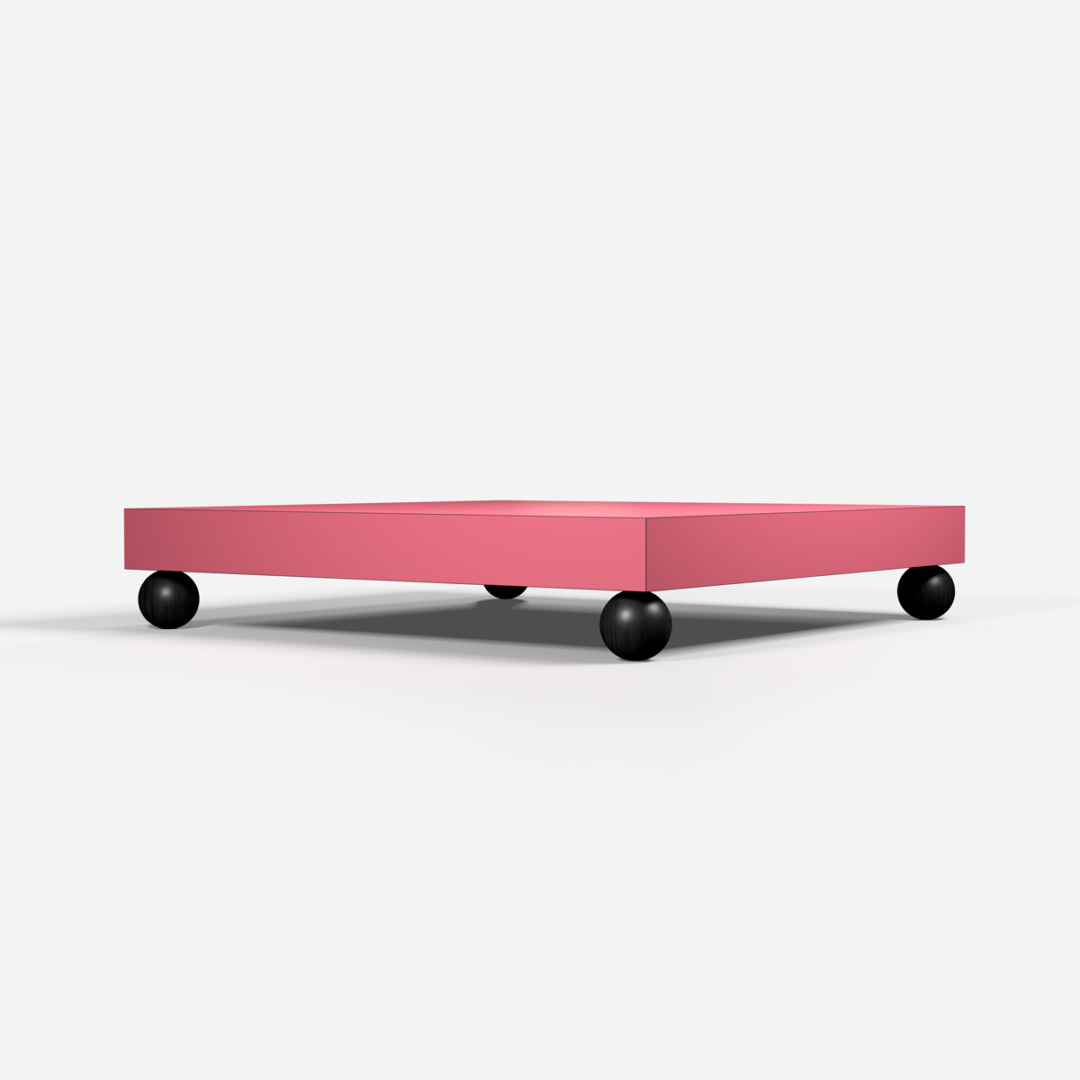 The small T02 table, like the T01, was designed by Superstudio to complete the Sofo seat project. It consists of a laminated Print top resting on four spherically shaped legs. It is the same size as the Sofo armchair, and this helps to emphasize the modular component of the project. Also, the decision to use pink as the colour of the top makes it an item ?which carries a bit of joie de vivre?, as Adolfo Natalini put it. Adolfo Natalini and Cristiano Toraldo di Francia chose it for one of their more iconic self-portraits.