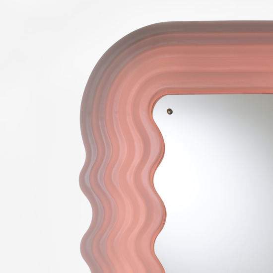 Ultrafragola mirror/lamp, with its sinuous profile that suggests long wavy hair, belongs to the Mobili Grigi series of complete bedroom and living room furnishings designed by Ettore Sottsass for Poltronova and presented at the third edition of Eurodomus in 1970. With the exception of Ultrafragola, the models never got beyond the prototype phase.