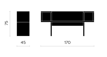 The Canton wooden bench, designed by Franco Raggi in 1988, fitted out with two spaces on the sides—containers for magazines, books and phone directories, still in use at the time—ideally designed for home entrances, ?was born, —Franco Raggi writes—, from a graphic exercise: a black line which in its continuous path creates two squares connected by a horizontal line. Dragging this line into the third dimension, I realised that the solid thus obtained could be a bench, not a comfortable seat, but for temporary use, where ergonomics could be sacrifice in favour of an abstract, almost neoplastic image. Books and things could be put in the squares transformed into open compartments.?