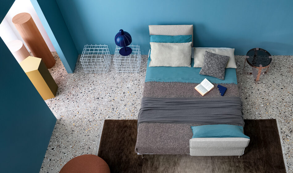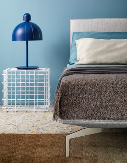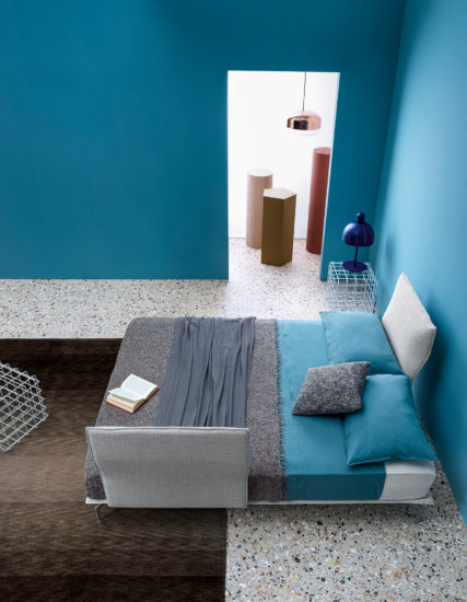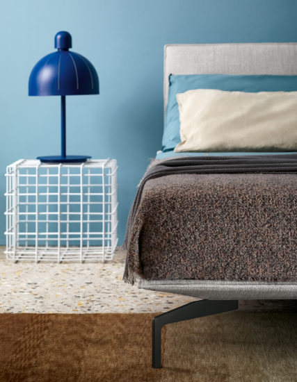 The Avant-Après bed has a sober allure and an elegant presence. Grounded yet lightweight, it transforms into extremely interesting configurations thanks to the particular headboards that can be positioned along the bases’s perimeter. The bed-frame, available for upholstery in fabric or leather, rests neatly on a metal base finished with painted metal feet.