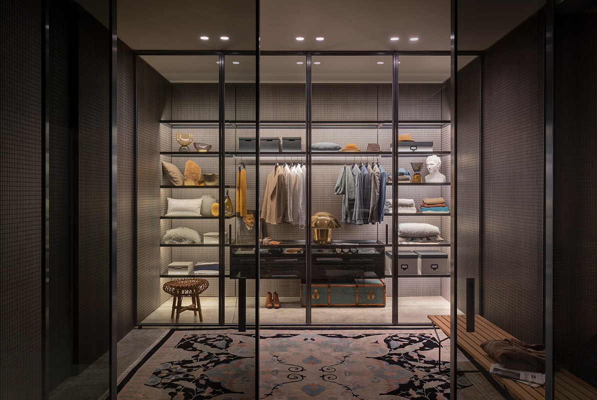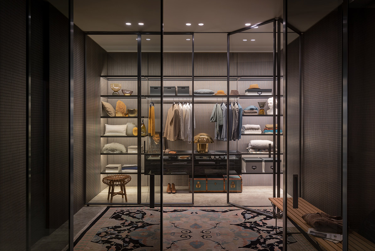 La porta per interni esterno muro Drive è un sistema combinato di porta scorrevole e di binario telescopico predisposto per essere installato direttamente a parete. Può leggersi come una superficie appoggiata alla parete.