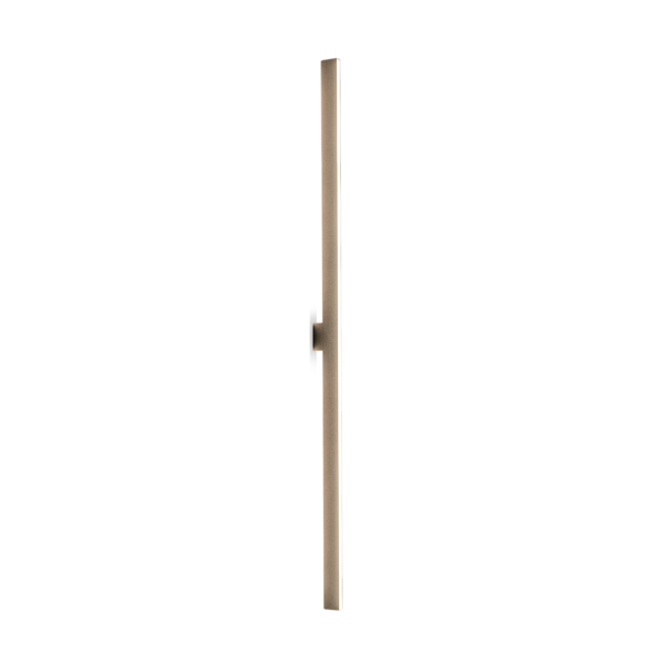 Il profilo luminoso di Fly, disponibile nelle finiture nickel dorato satinato, bronzo-nickel spazzolato e antracite, grazie all'accessorio "vela" può essere delicatamente ombreggiata da un diffusore tessile in cotone bianco o tessuto effetto marmo Calacatta.