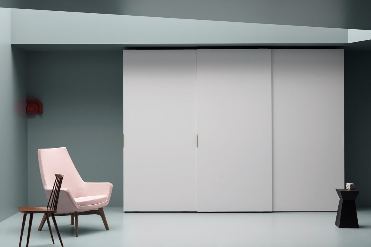 Aria is a wardrobe and walk-in wardrobe system that allows a combination of different units. The structure, with closed or through sides in Black or Bronze aluminium, can be closed by sliding or hinged doors in a choice of materials, also in aluminium with flush glass. Wardrobes and walk-in wardrobes can be fitted with suspended or floor-standing drawer units, storage racks, glass and aluminium pull-out shelves, boxes and customised accessory holders.