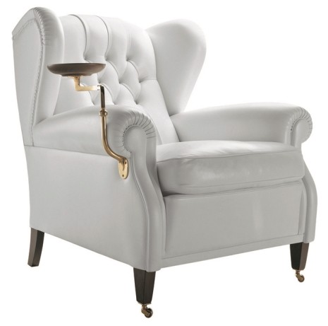 Poltrona Frau的這把1919沙發(fā)椅,洛可可的華麗造型,首先就顯得吃瓜群眾品味不俗,椅背兩側(cè)的耳朵形靠枕,填充了足夠泡泡紗的扶手,貼合身體又柔軟舒適,尤其側(cè)面貴族范兒十足的黃銅支架實木托盤,上面放杯咖啡的話,這熱鬧看得不能更愜意。
